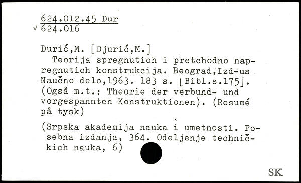 Duric,M. [Djuric,M.] Teorija spregnutich i pretchodno nap-regnutich konstrukcija.