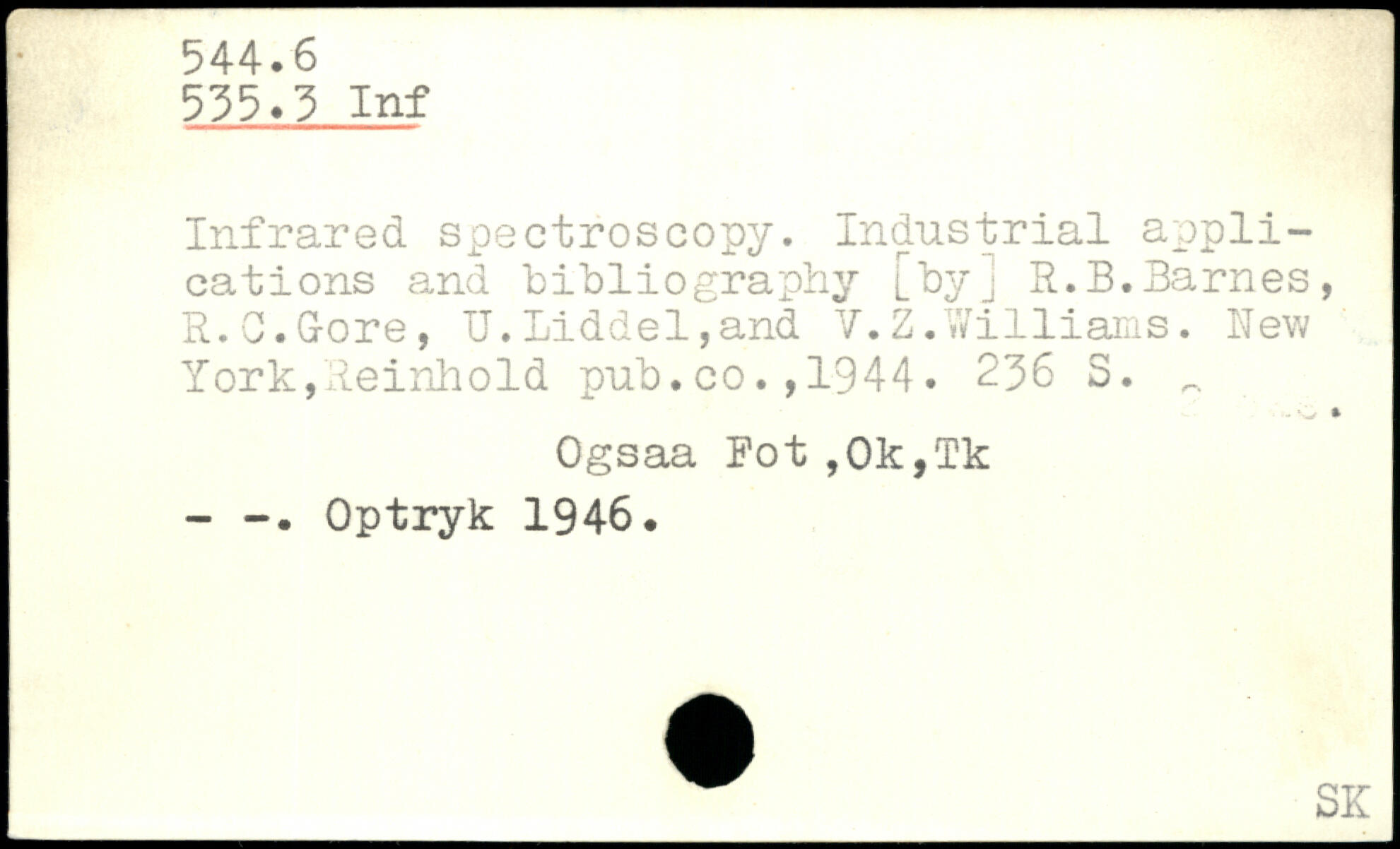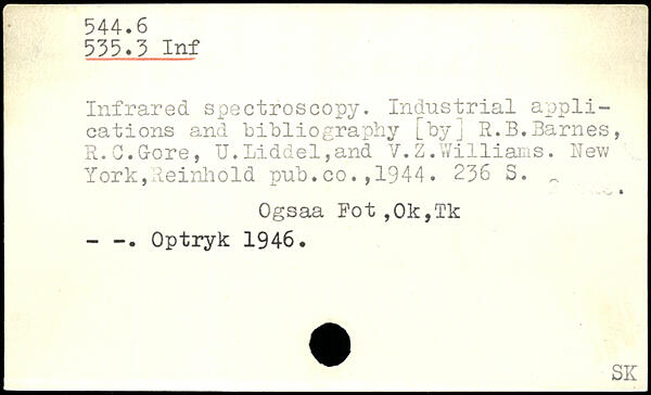 Infrared spectroscopy. Industrial applications and bibliography [by] R.B.Barnes, R.C.G-ore, U.Liddel,and V.Z.W1111ams.