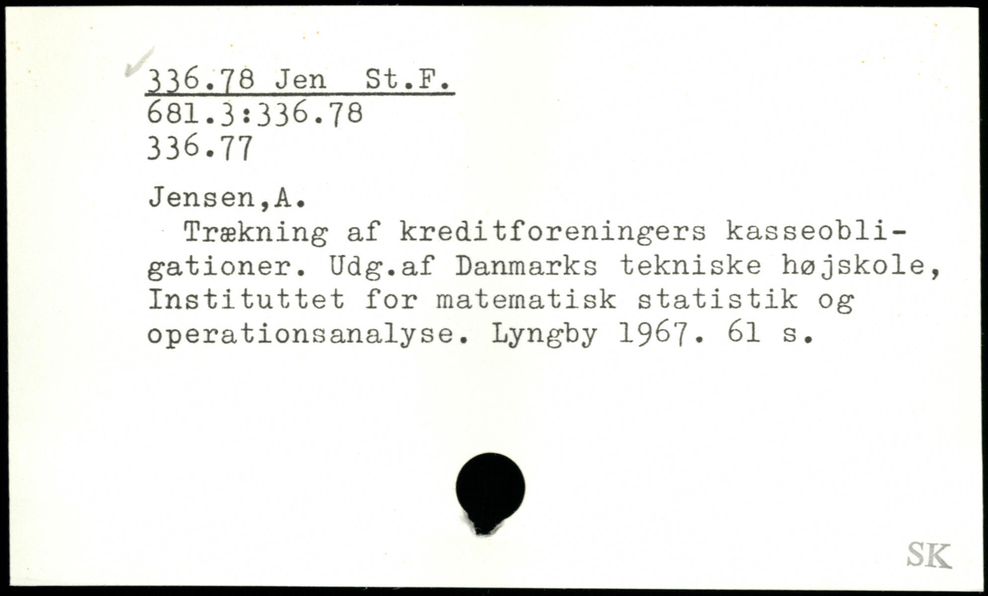 Trækning af kreditforeningers kasseobligationer. Udg.af Danmarks tekniske højskole, Instituttet for matematisk statistik og operationsanalyse. Lyngby 1967. 6l s.