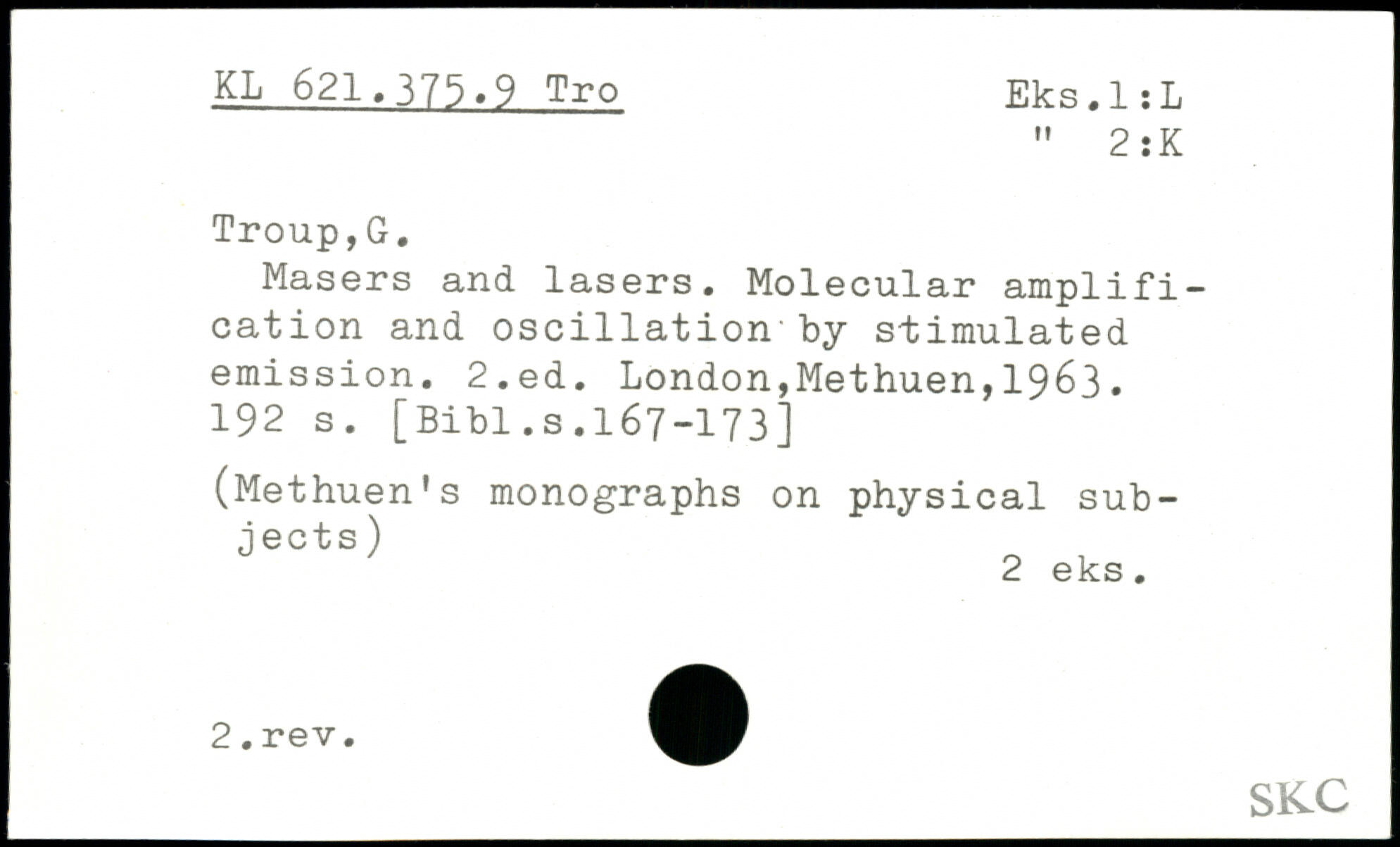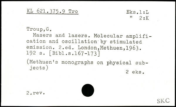 Masers and lasers. Molecular amplification and oscillation by stimulated emission.