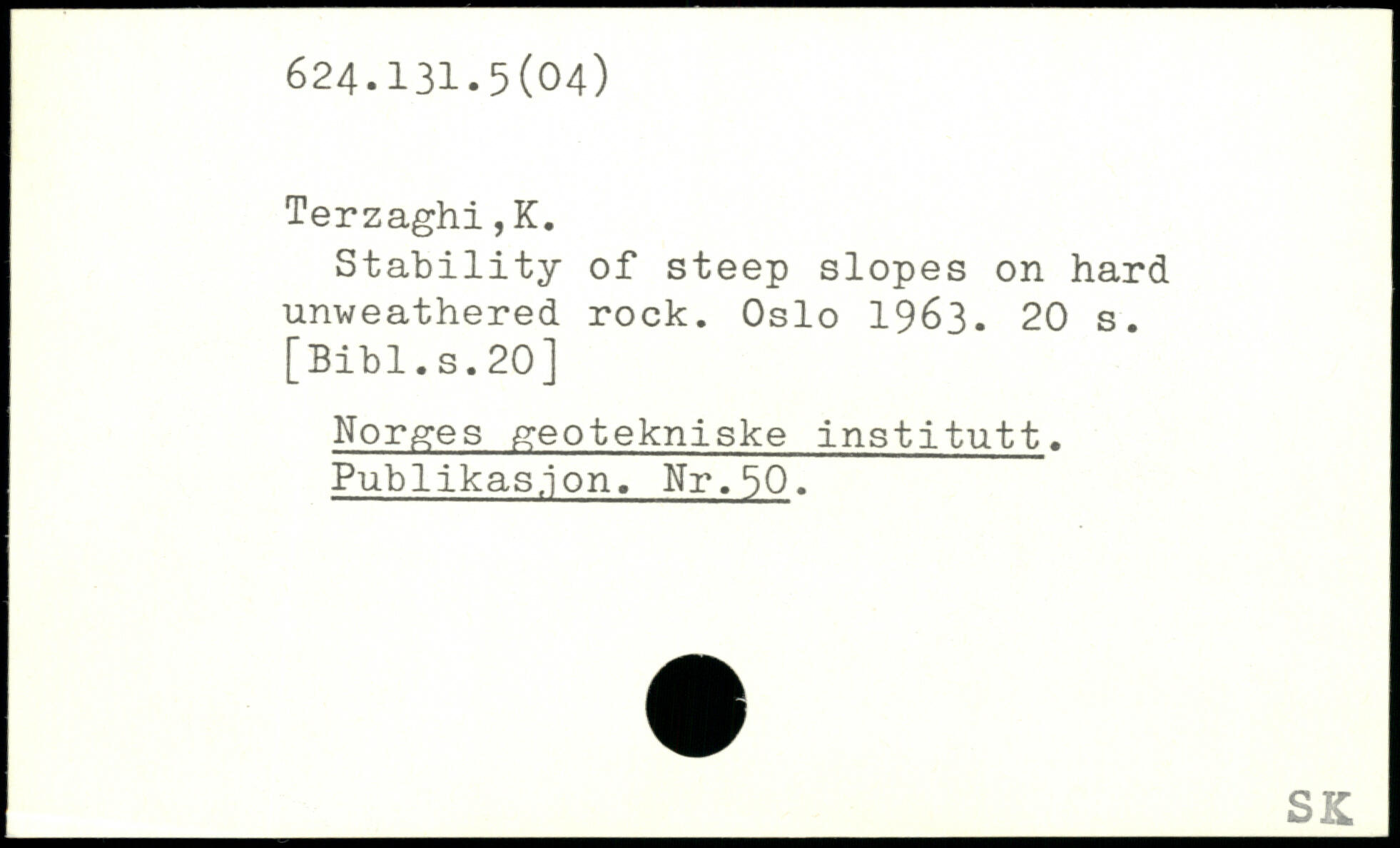 Stability of steep slopes on hard unweathered rock. Oslo 1963.