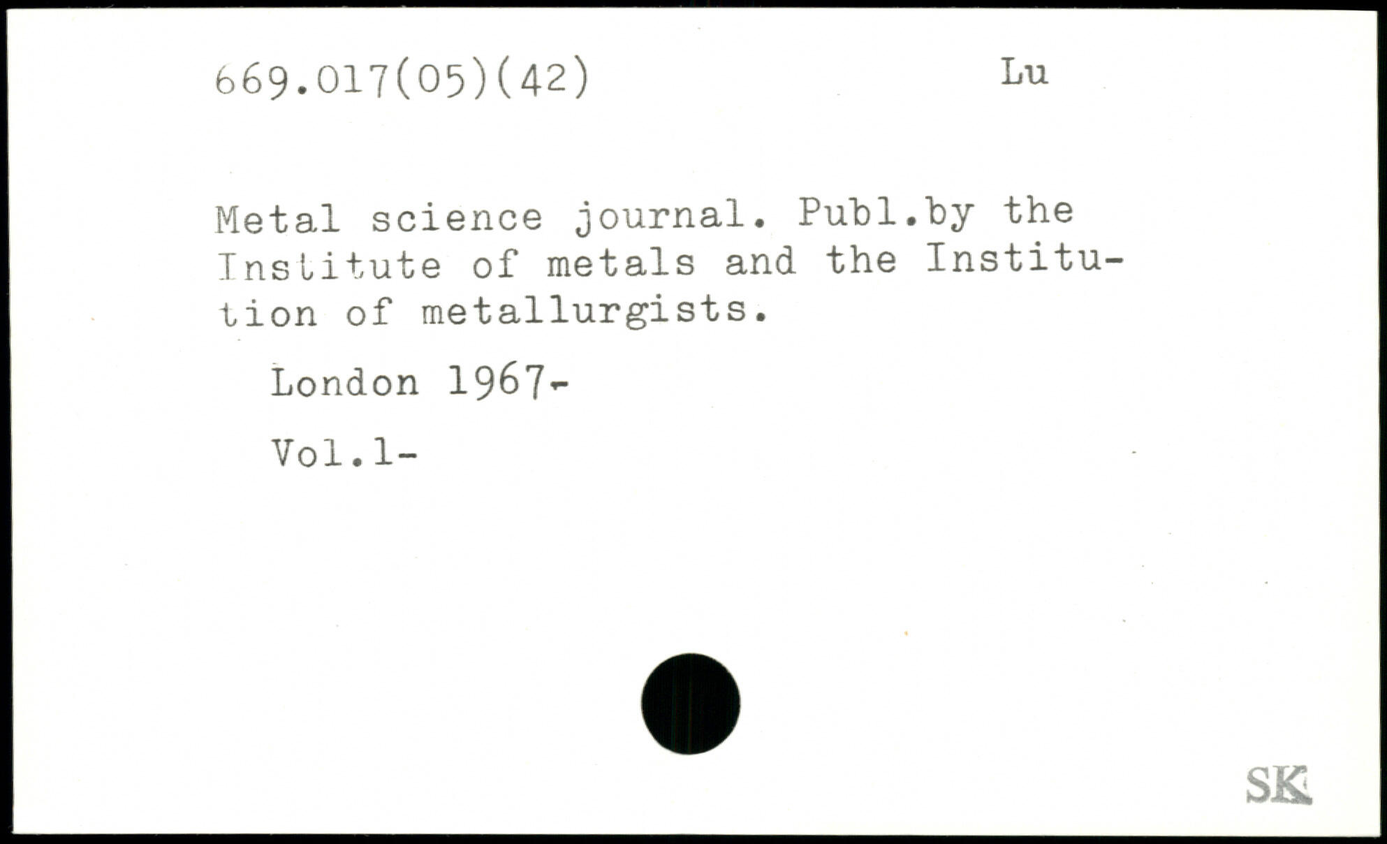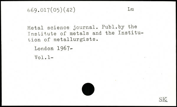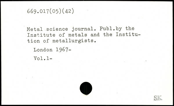 Metal science journal. Puhl.by the Institute of metals and the Institution of metallurgists.