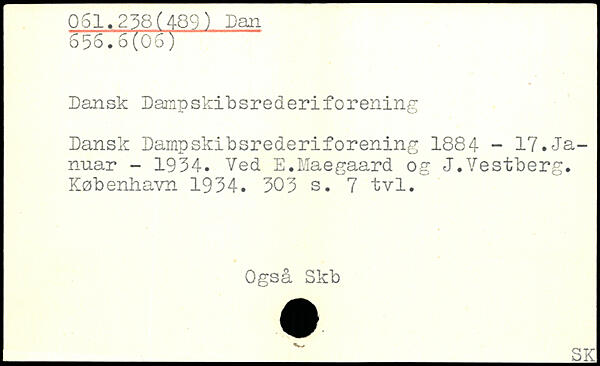 Dansk Dampskib srederi forening Dansk Dampskibsrederiforening 1884 - 17.Januar - 1934. Ved E.Maegaard og J.Vestberg.