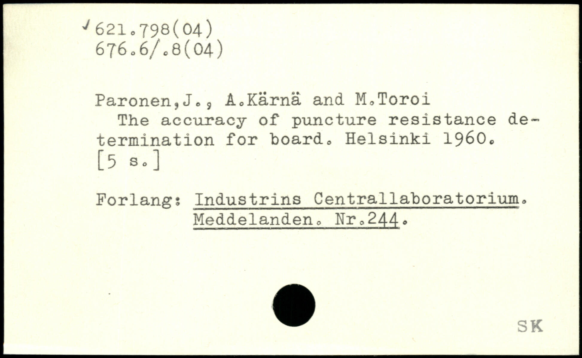 Päronen,J,9 A,Karna and M,Toroi The accuracy of puncture resistance determination for board