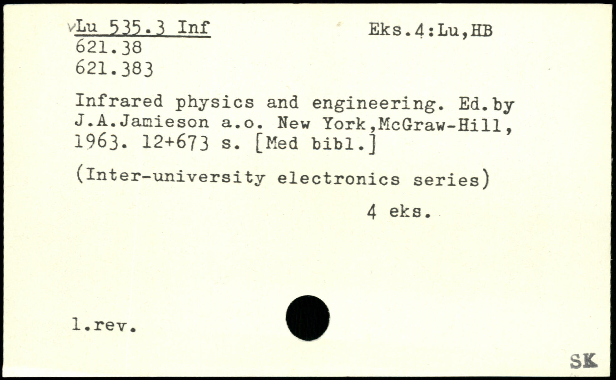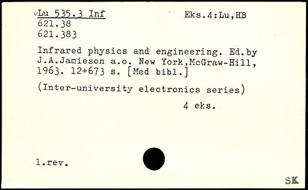 Infrared physics and engineering. Ed. by J.A.Jamieson a.o.