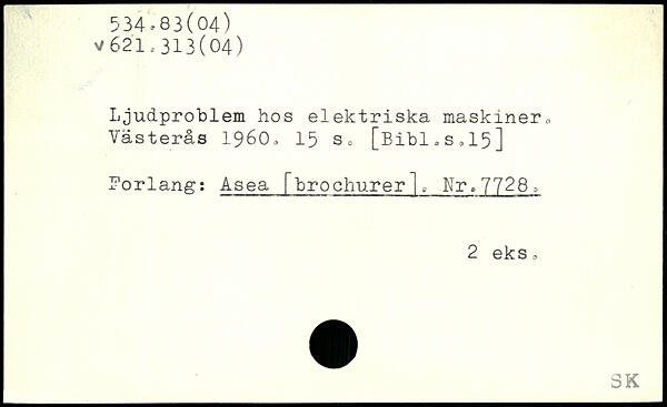 Ljudproblem hos elektriska maskiner, Yasterås 1960