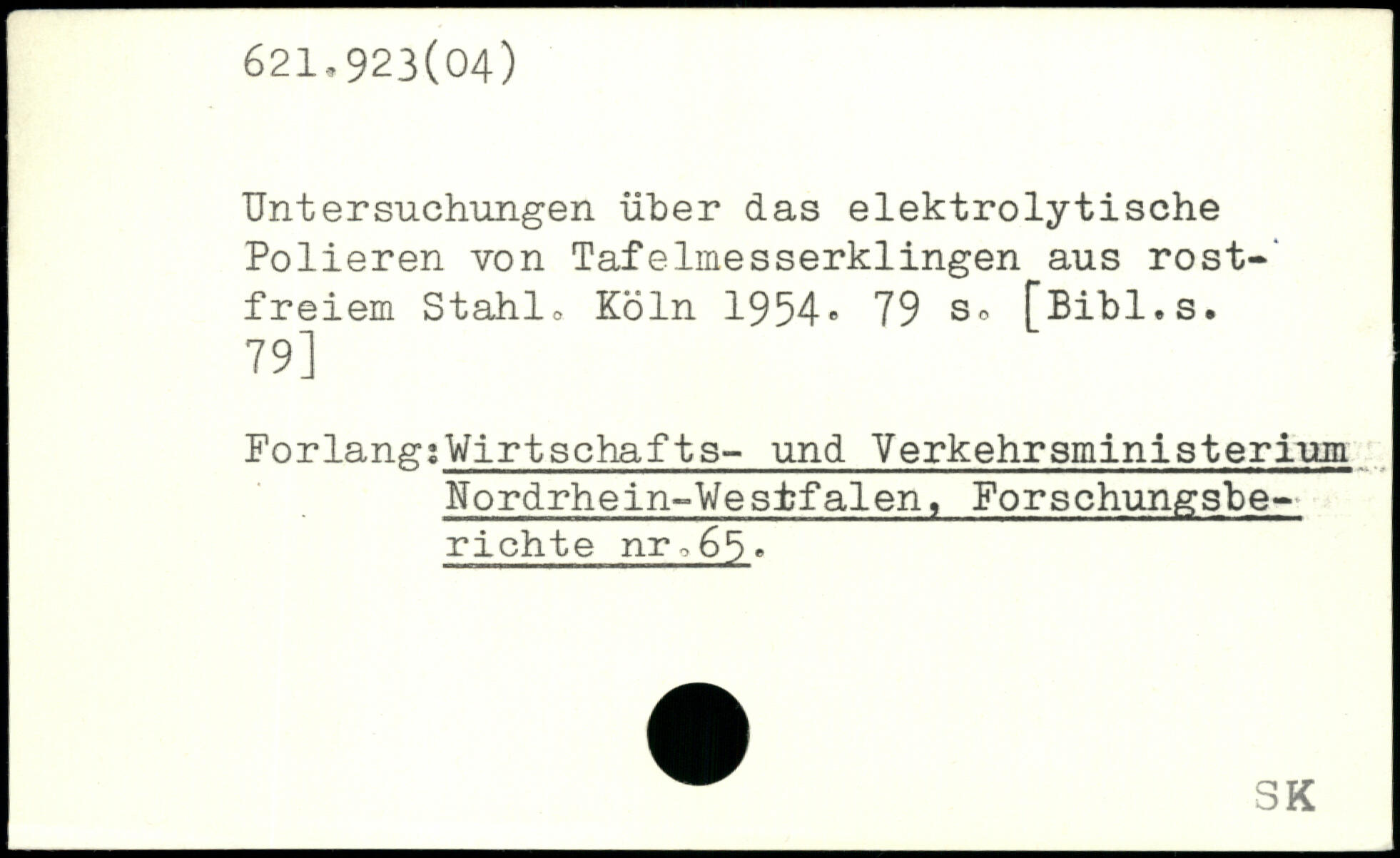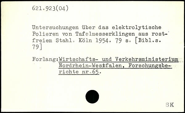 Untersuchungen über das elektrolytische Polieren von Tafelmesserklingen aus rost-' freiem Stahl,