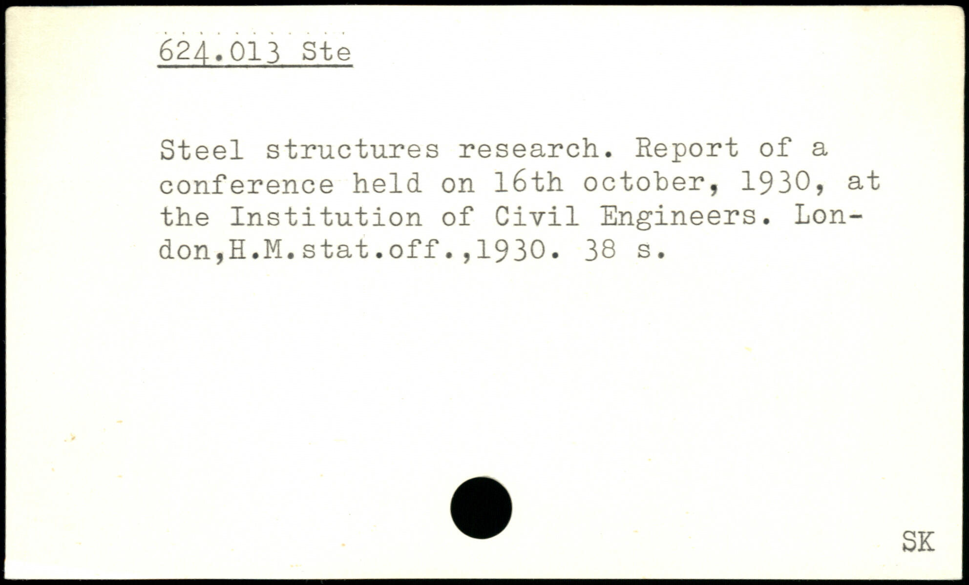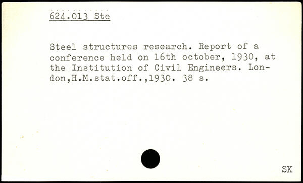 Steel structures research. Report of a conference held on 16th October, 1930, at the Institution of Civil Engineers. Lon-don,H.M.stat.off.,1930.