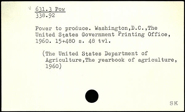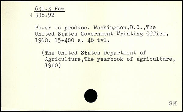 Power to produce. Washington,D.C.,The United States Government Printing Office, 1960.