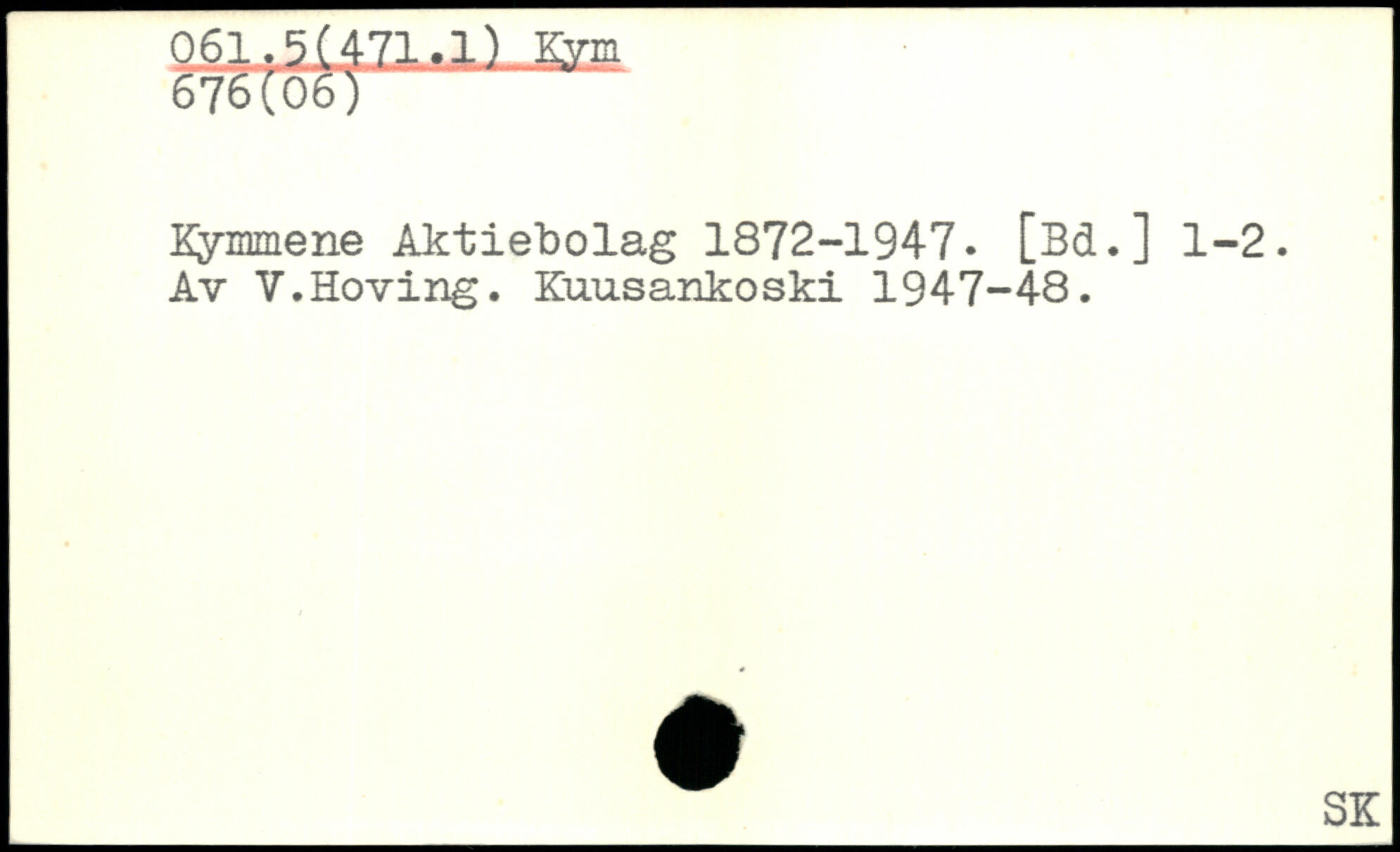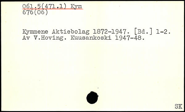 Kymmene Aktiebolag 1872-1947- [3d.] 1-2. Av V.Hoving. Kuusankoski 1947-48.