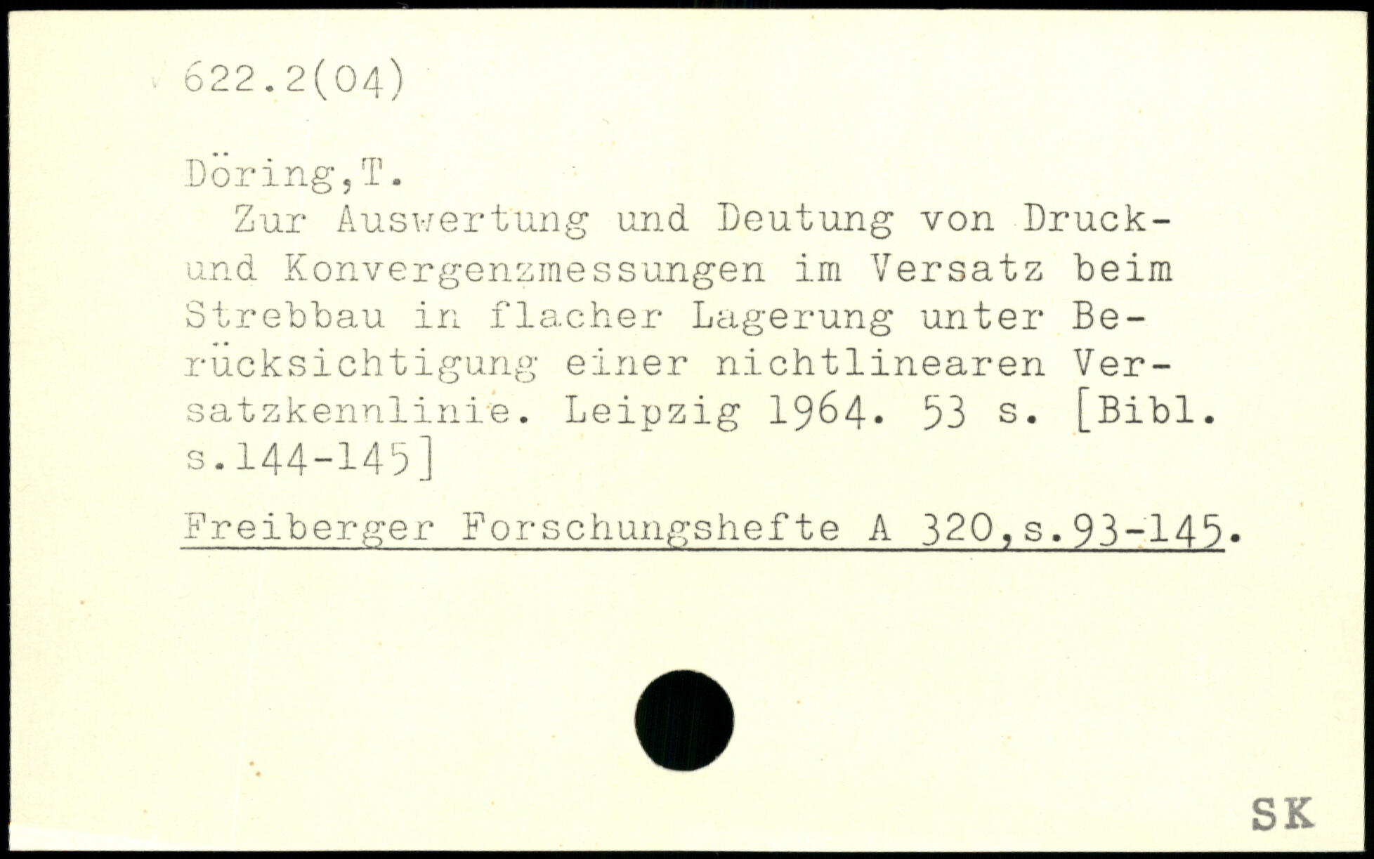 Zur Auswertung und Deutung von Druck-und Konvergenzmessungen im Versatz beim Strebbau in flacher Lagerung unter Berücksichtigung einer nichtlinearen Versatzkennlinie.