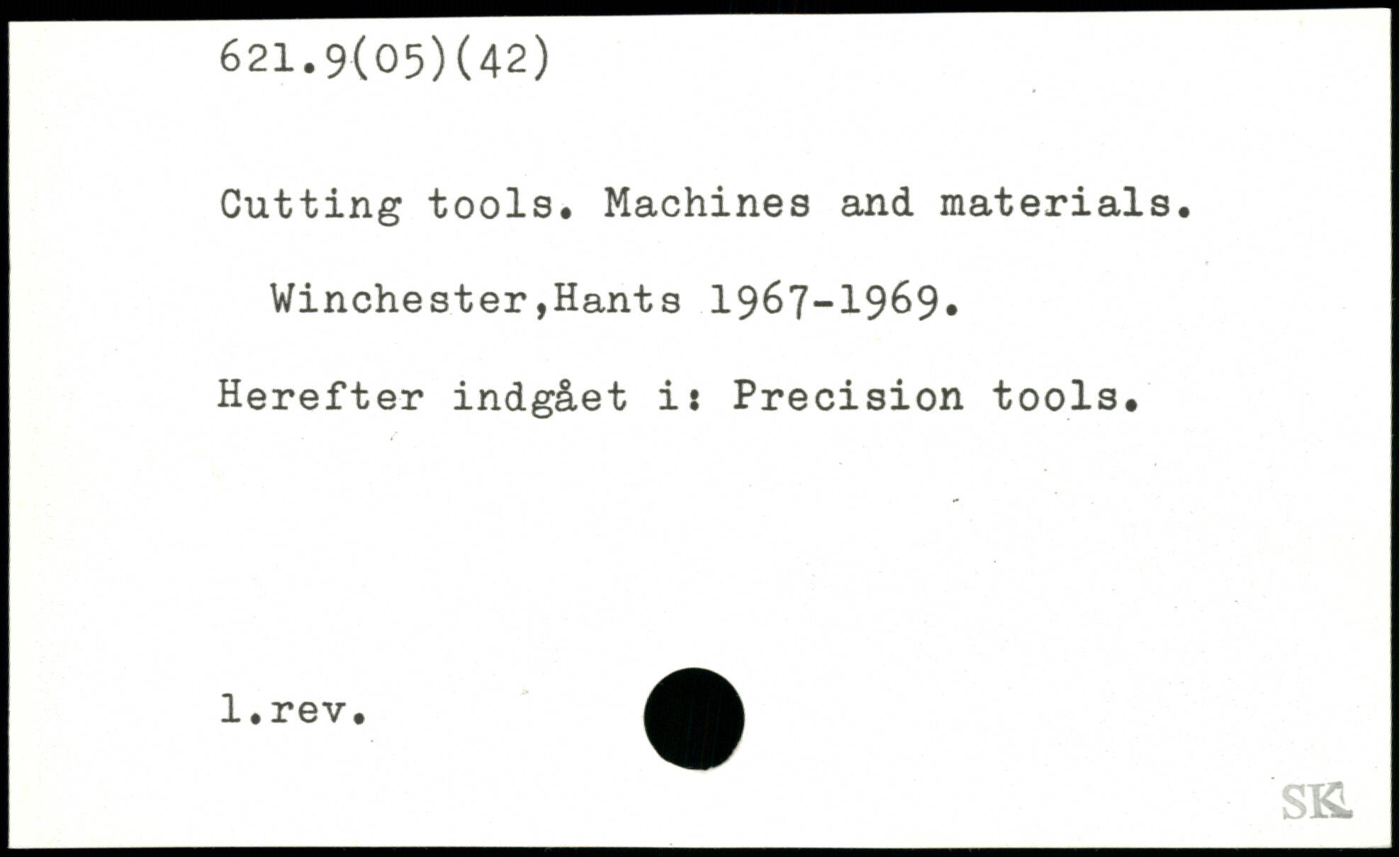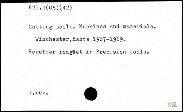 Cutting tools. Machines and materials. Winchester,Hants 1967-1969, Herefter indgået i: Precision tools. 8 K.