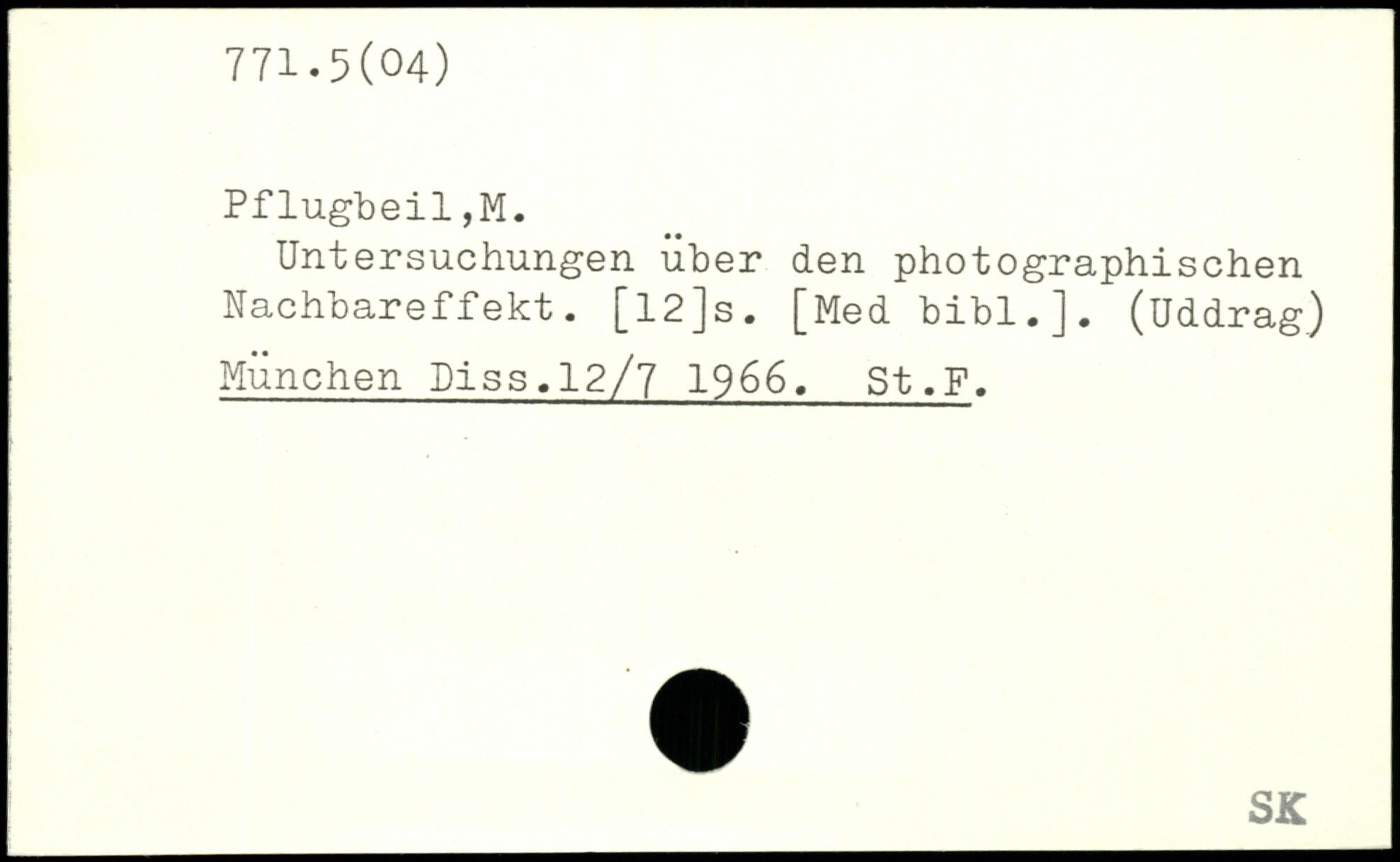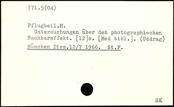 Untersuchungen über den photographischen Nachbareffekt. [I2]s. [Med bibl.]. (Uddrag) München Piss,12/7 1966. St.F.