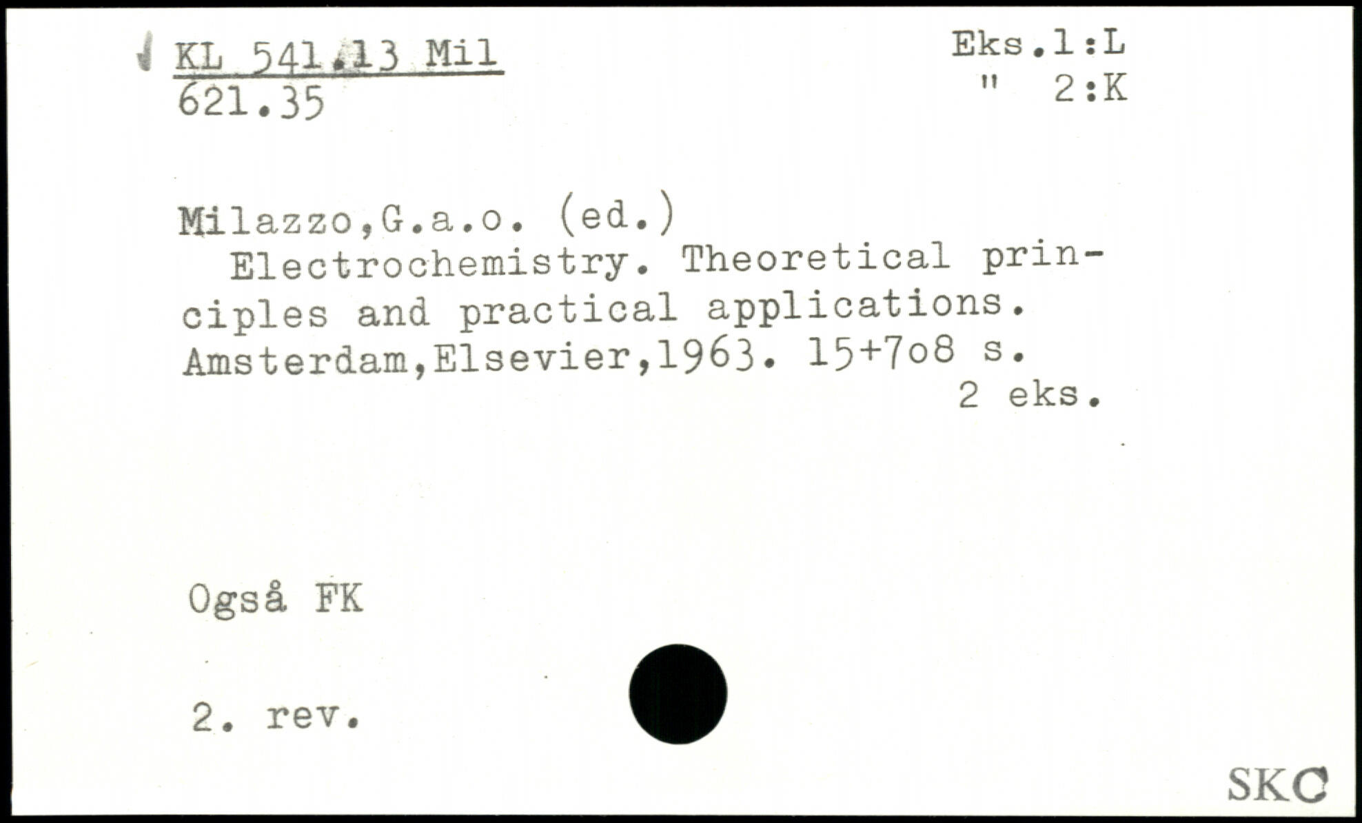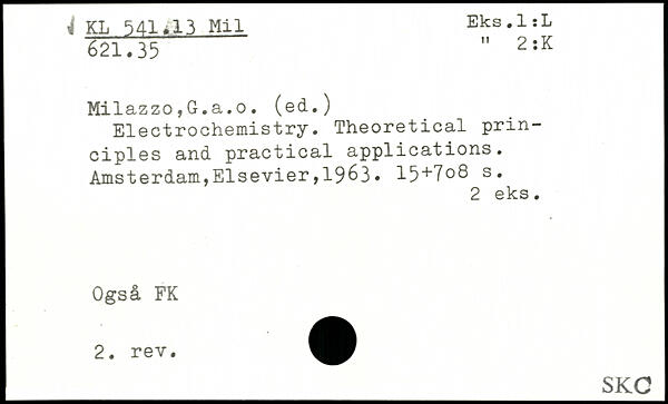 Milazzo,G.a.o. (ed.) Electrochemistry. Theoretical principles and practical applications.