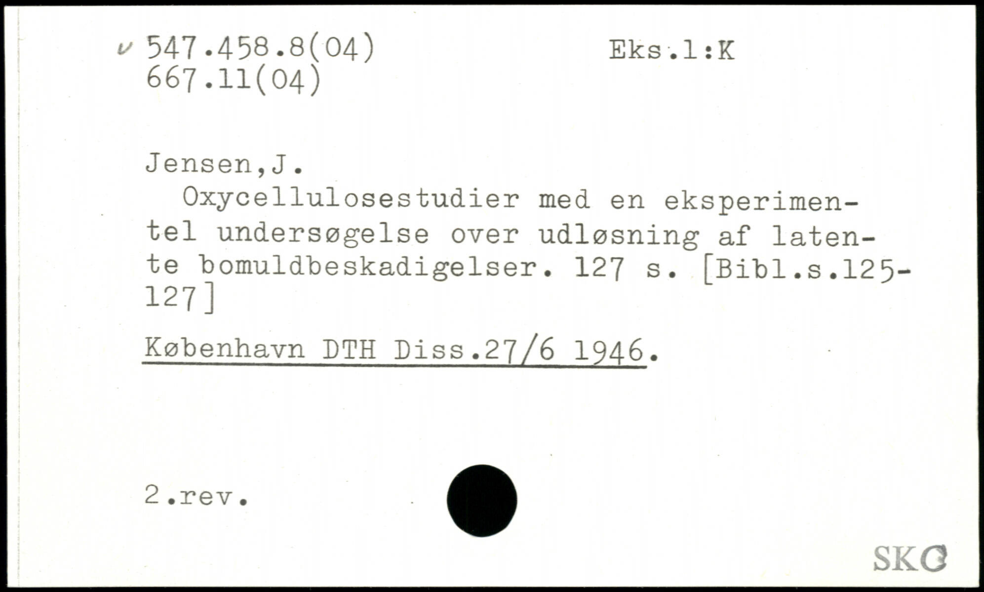 Oxycellulosestudier med en eksperimentel undersøgelse over udløsning af latente bomuldbeskadigelser.