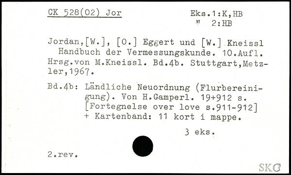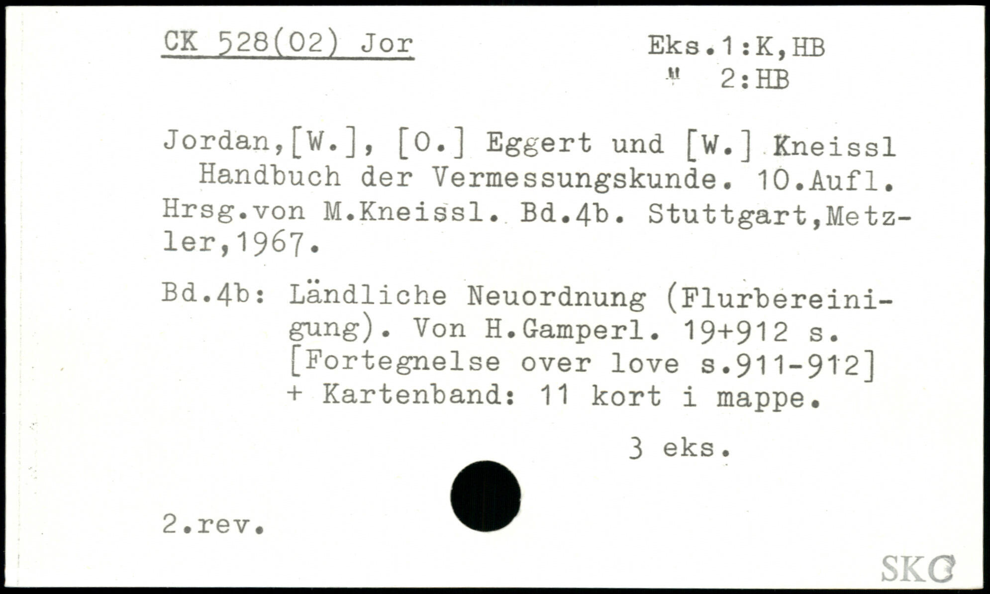 ü 2: HB Jordan,[W.], [0.] Eggert und [W.] Kneissl Handbuch der Vermessungskunde. lO.Aufl. Hrsg.von M.Kneissl.