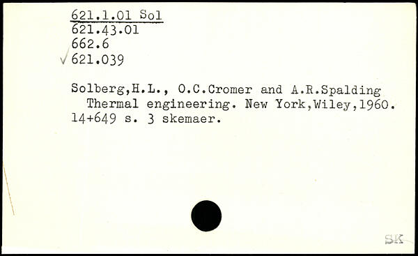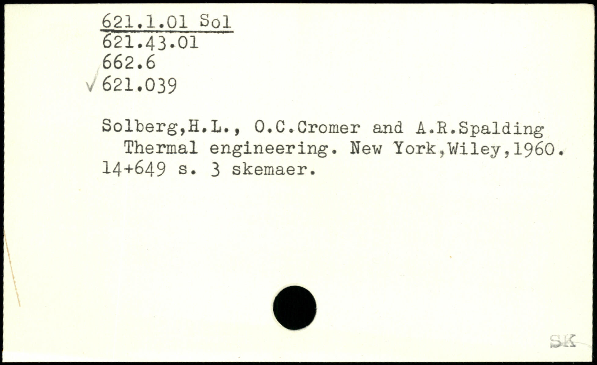 Solberg,H.L., O.C.Cromer and A.R.Spalding Thermal engineering. New York.Wiley,1960.