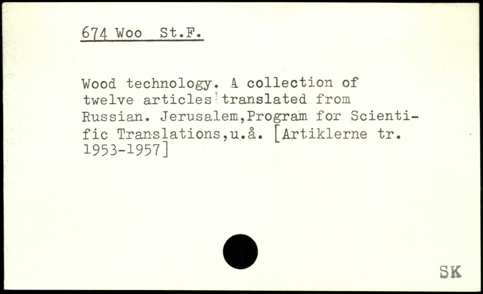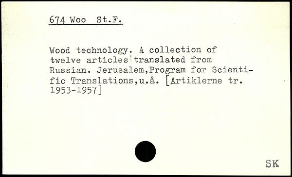 Wood technology. 4. collection of twelve articles translated from Russian. Jerusalem,Program for Scientific Translations,^ a. [Artiklerne tr. 1953-1957]