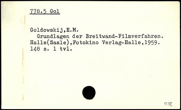 Grundlagen der Breitwand-Filmverfahren. Halle(Saale),Fotokino Verlag-Halle,1959.