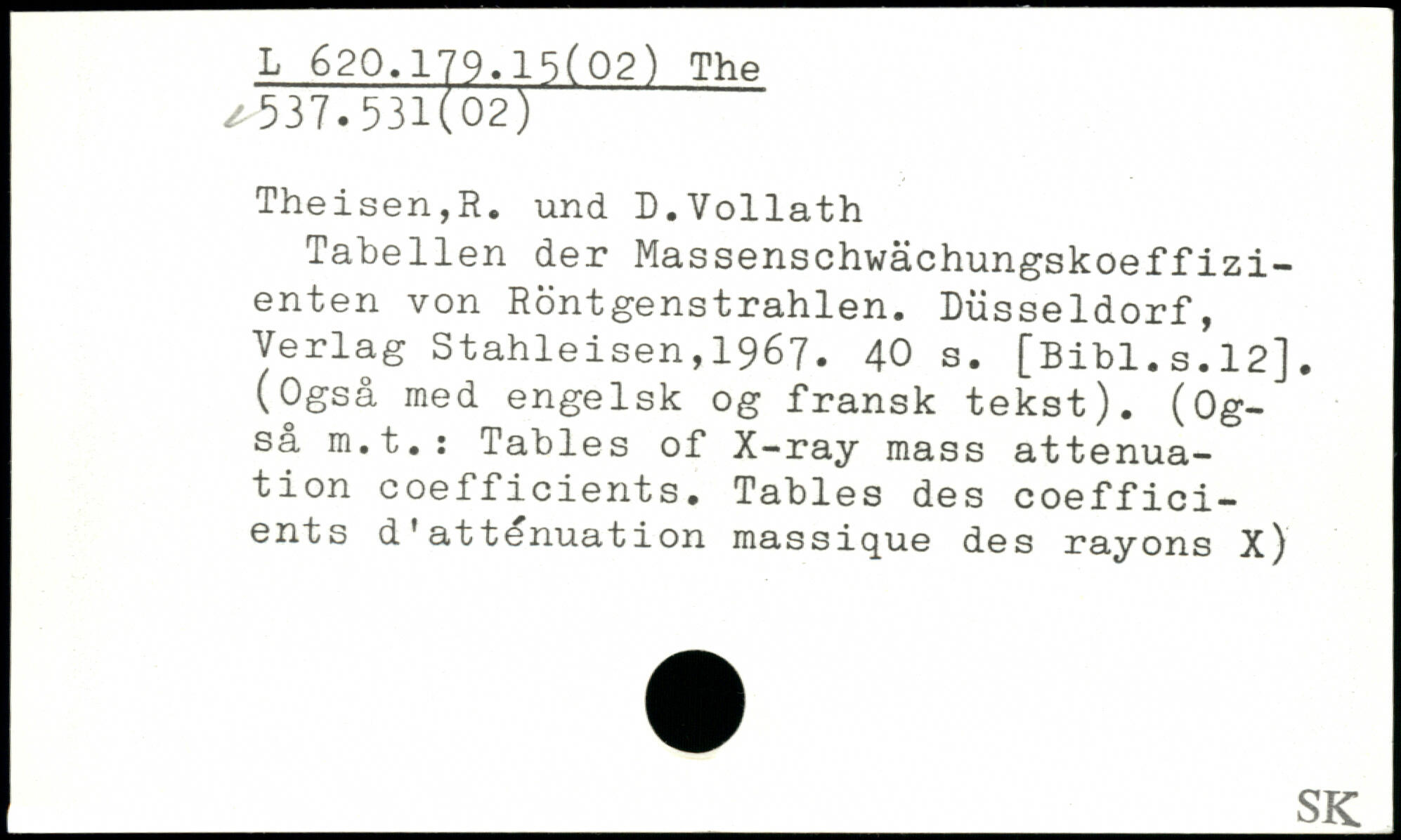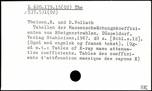 Tabellen der Massenschwàchungskoeffizi-enten von Rdntgenstrahlen.