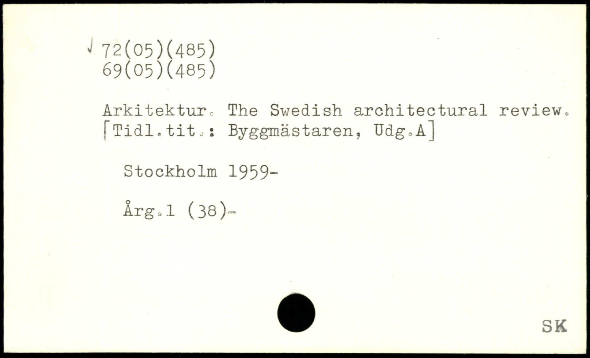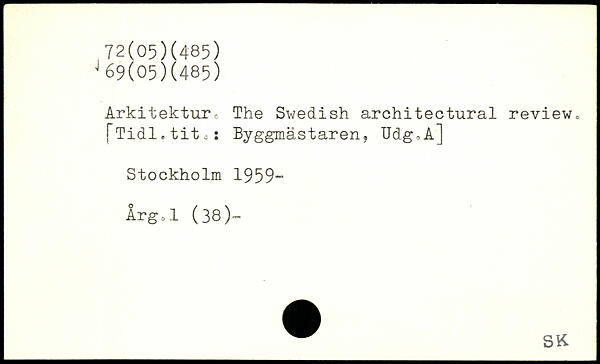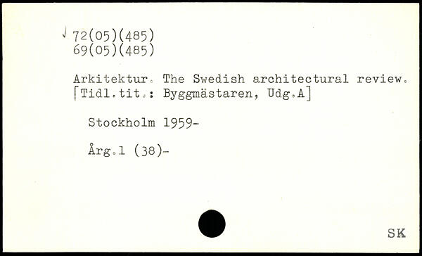 Arkitekture The Swedish architectural review, fTidl.tite,: Byggmästaren, Udg,A]