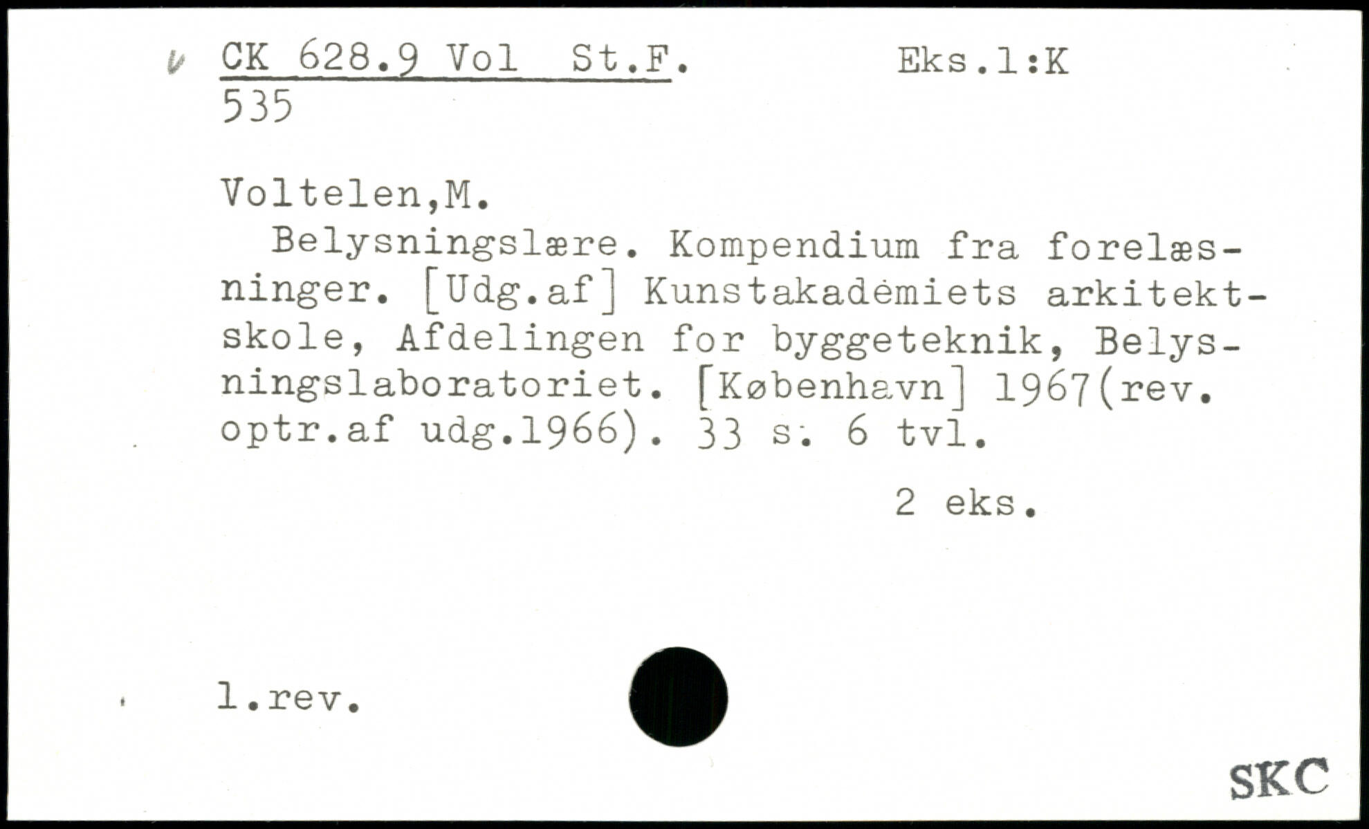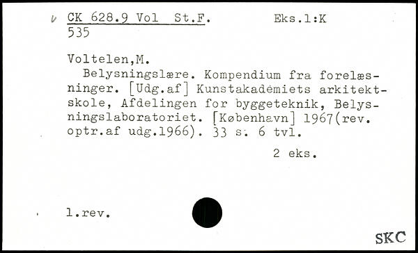 Belysningslære. Kompendium fra forelæsninger. [Udg.af] Kunstakademiets arkitektskole, Afdelingen for byggeteknik, Belysningslaboratoriet.