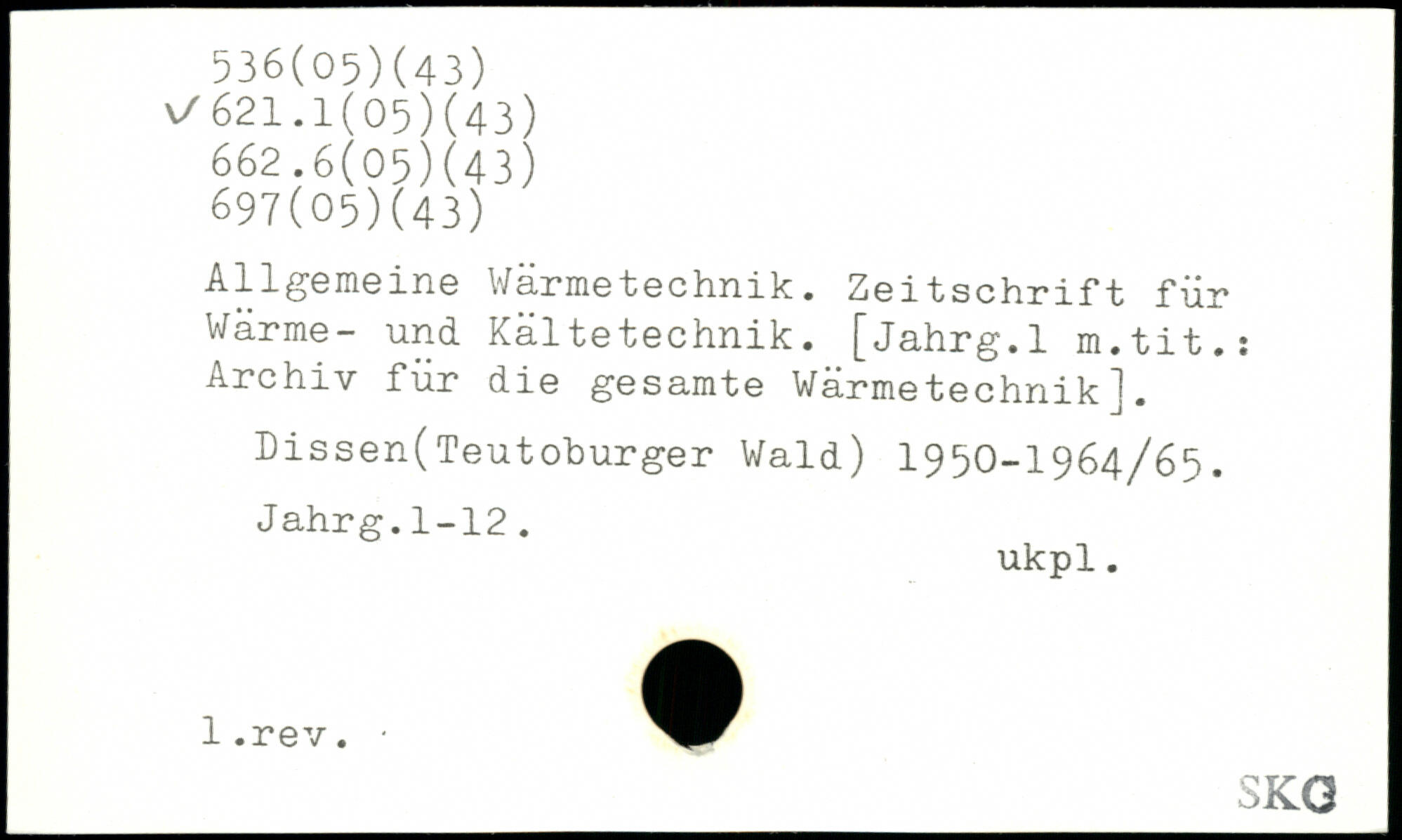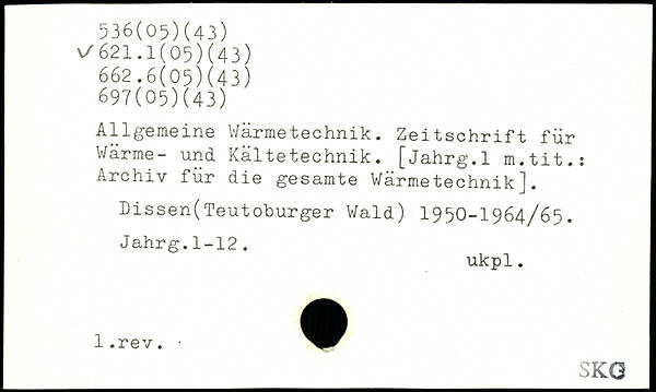 Allgemeine Wärmetechnik. Zeitschrift für Warme- und Kältetechnik
