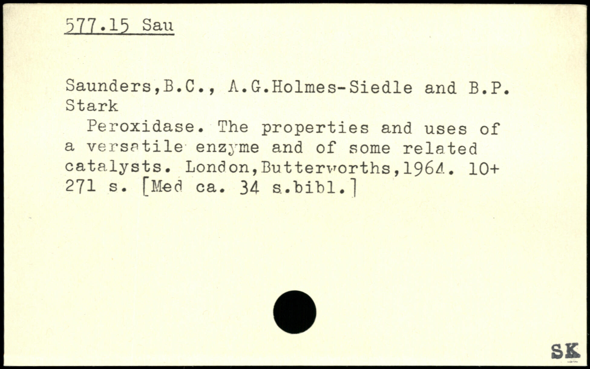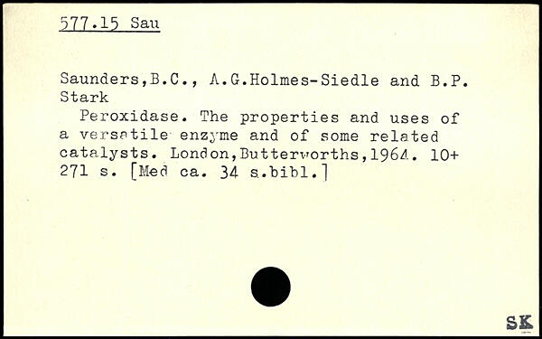 Saunders,B.C., A.G.Holmes-Siedle and B.P. Stark Peroxidase. The properties and uses of a versatile enzyme and of some related catalysts.