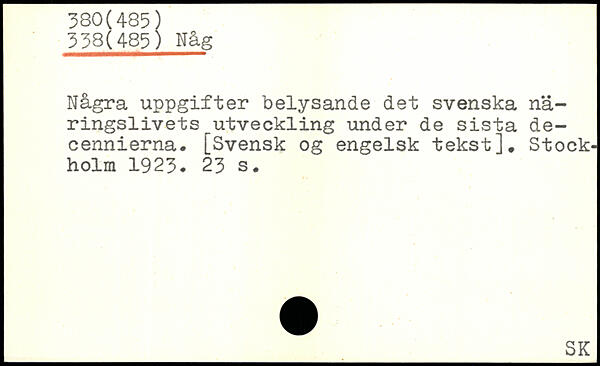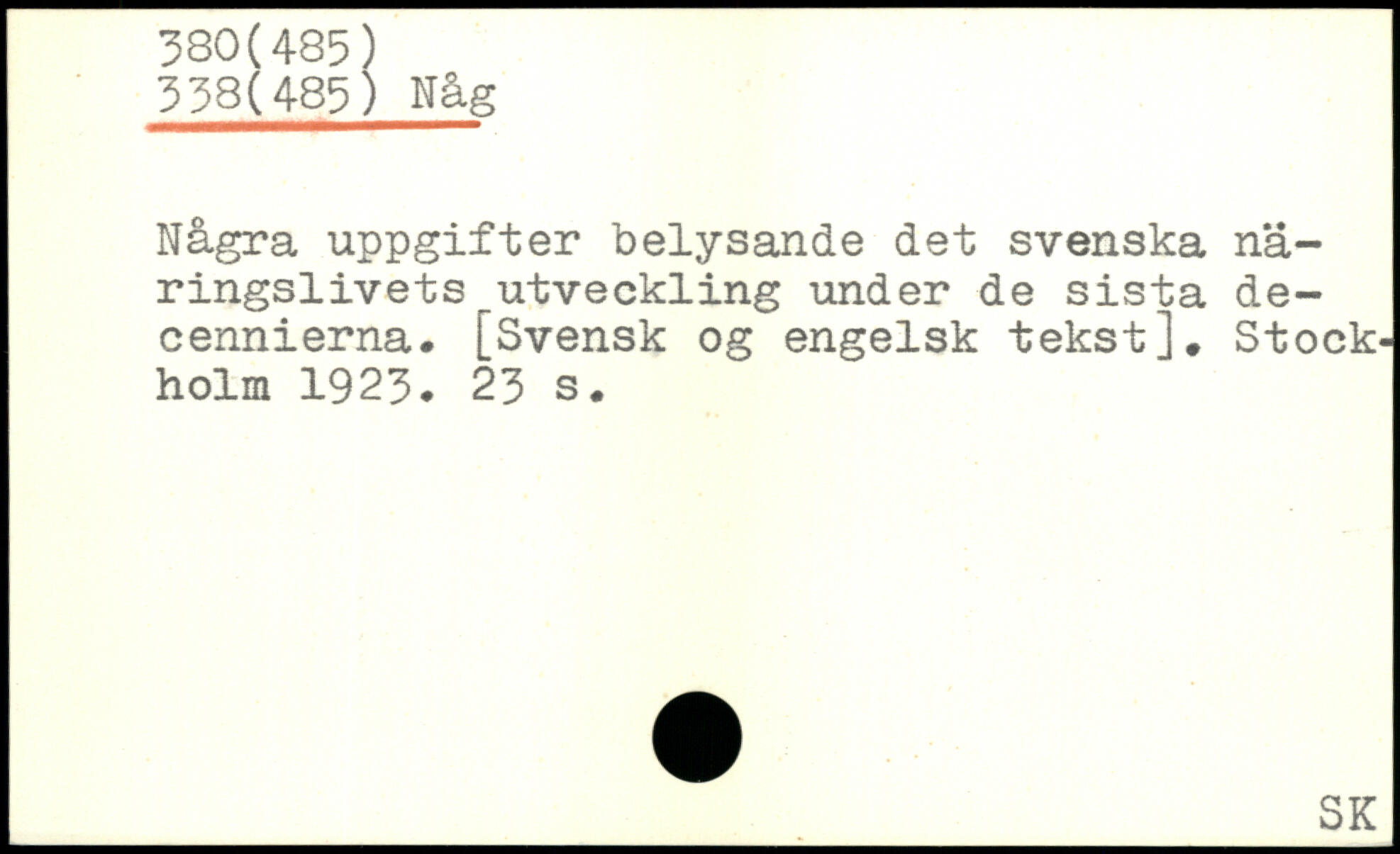 Några uppgifter belysande det svenska nä-ringslivets utveckling under de sista decennierna. [Svensk og engelsk tekst].