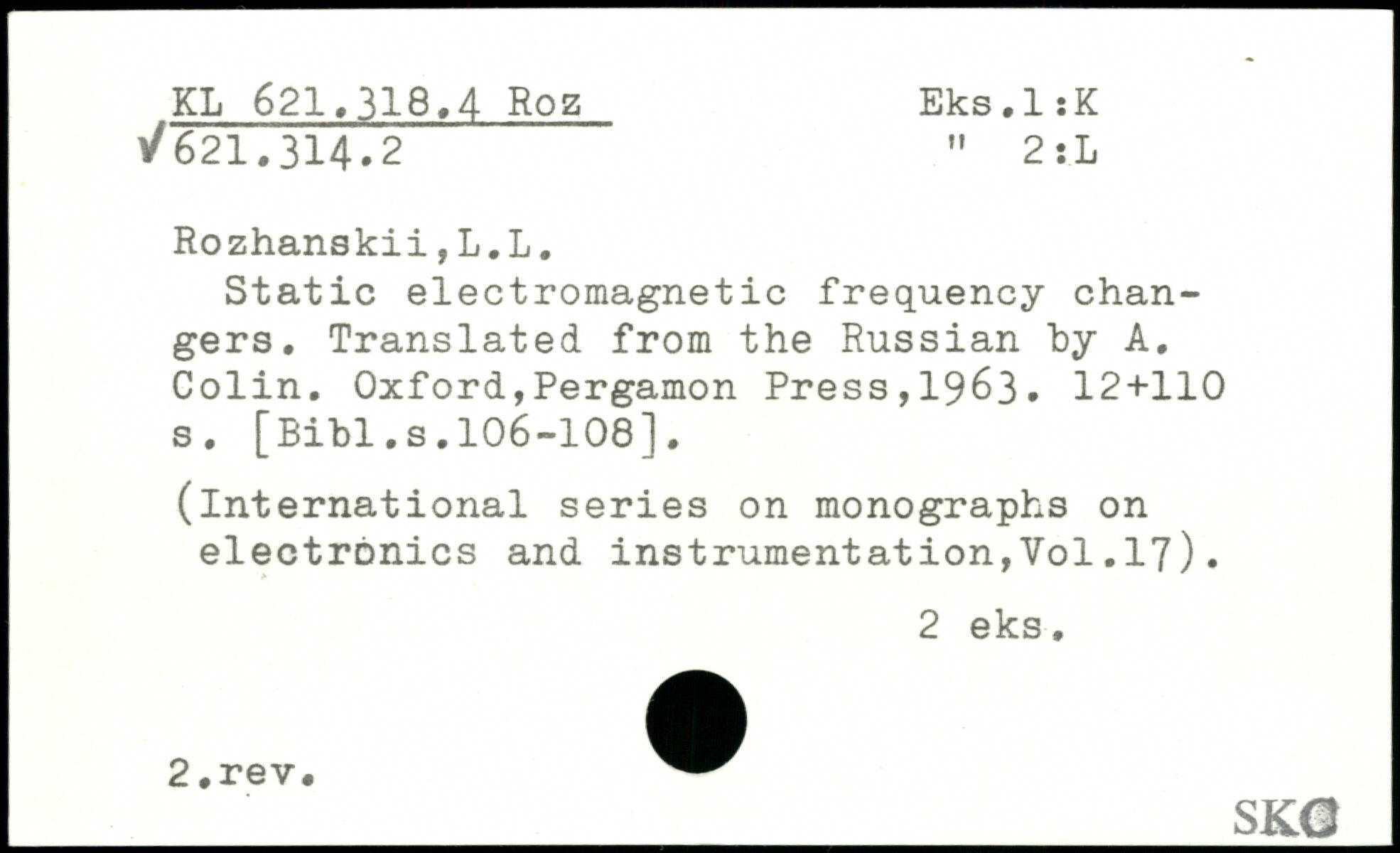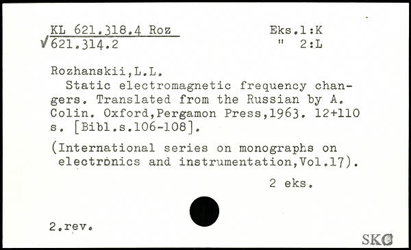 Static electromagnetic frequency changers. Translated from the Russian by A. Colin.