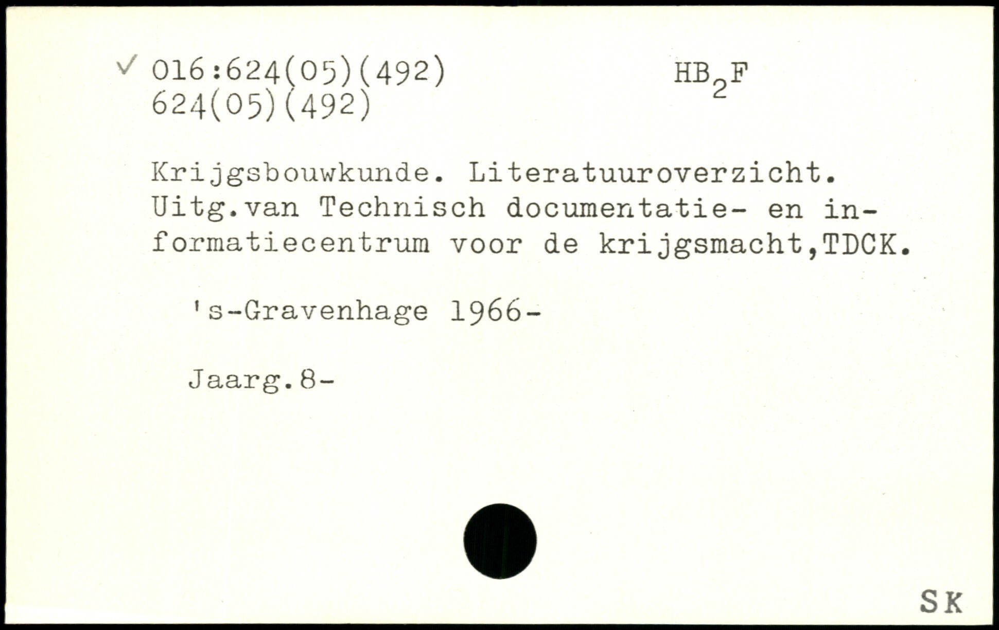Krijgsbouwkunde. Literatuuroverzieht. Uitg.van Technisch documentatie- en in-formatiecentrum voor de krijgsmacht,TDCK. 1s-Gravenhage 1966- Jaarg.8-
