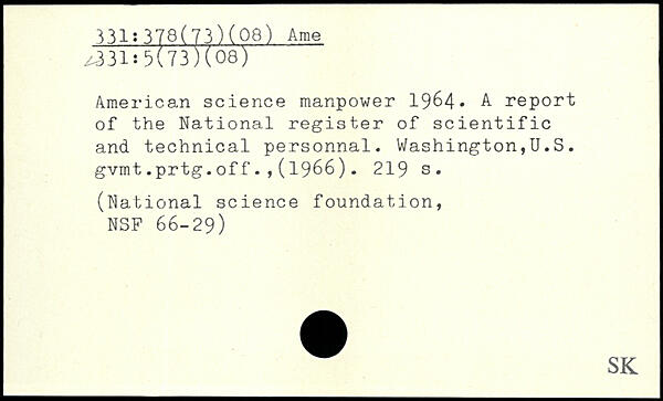 American science manpower 1964- A report of the National register of scientific and technical personnal. Washington,U.S. gvmt.prtg.off.,(1966).