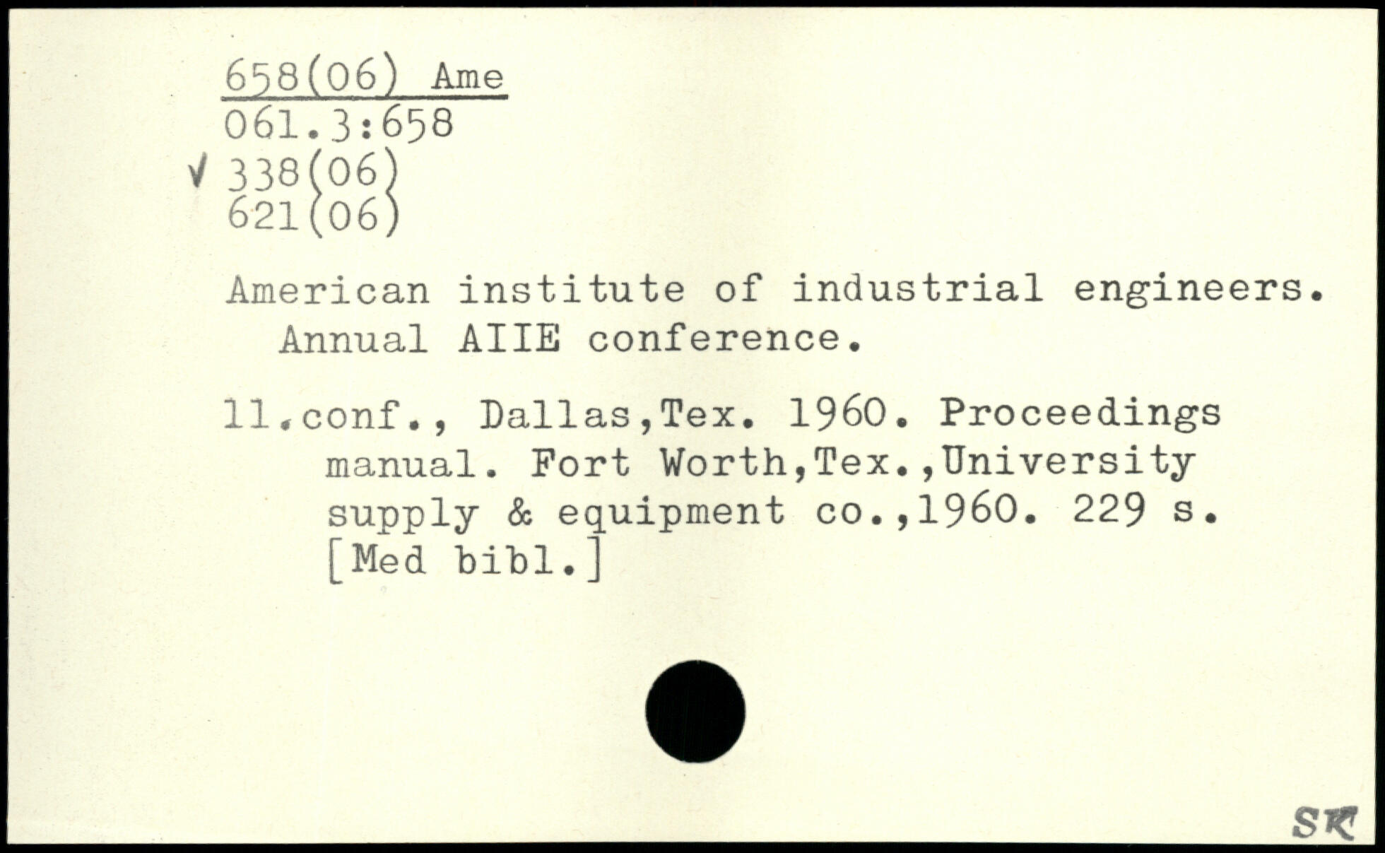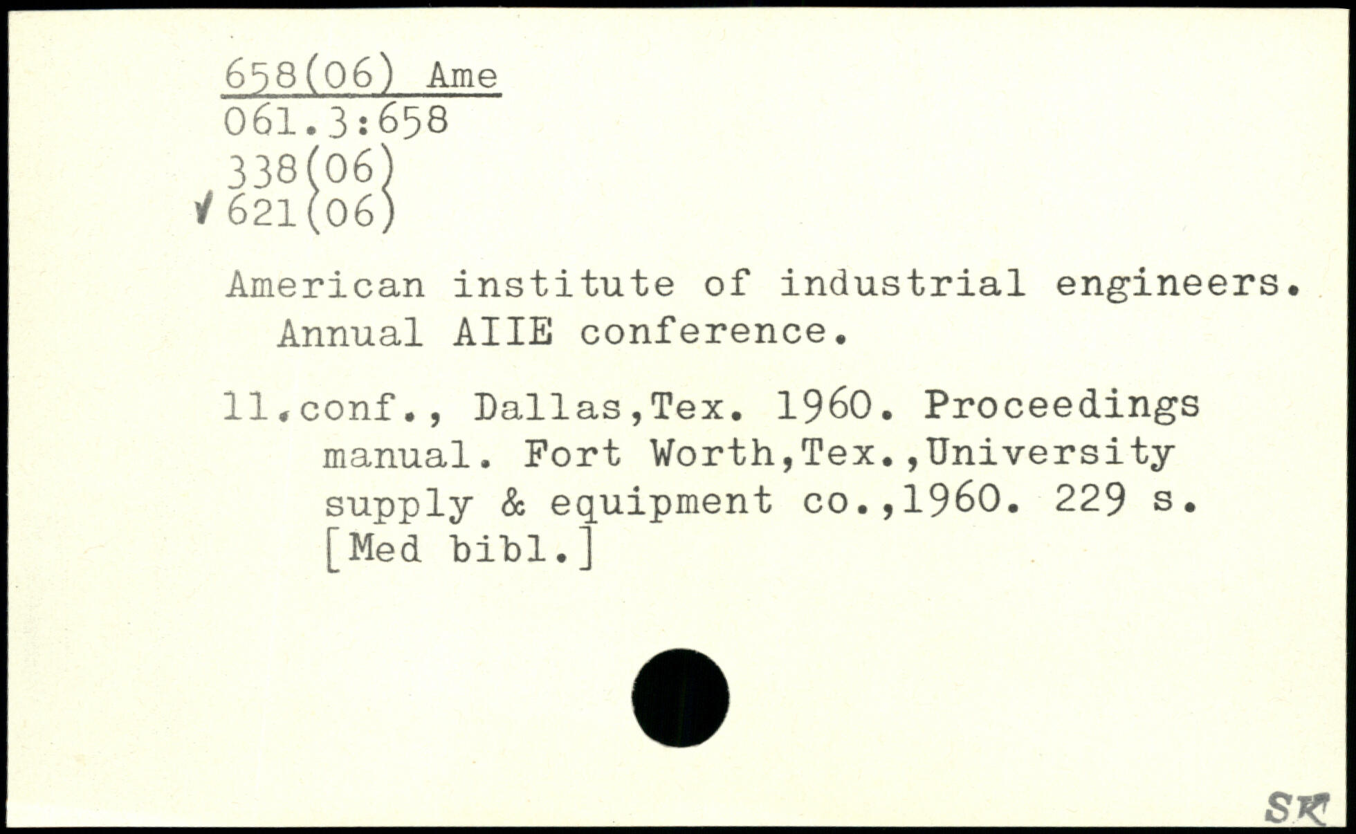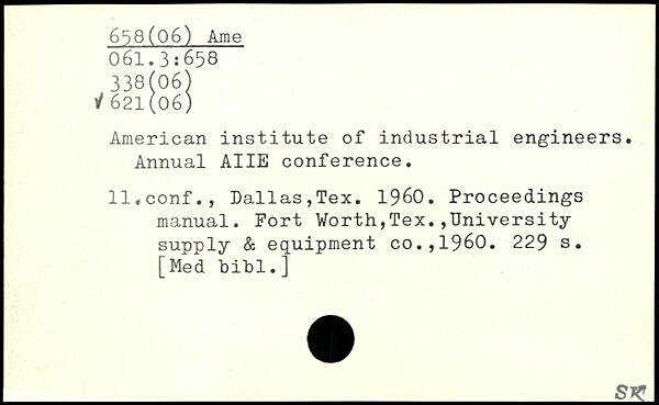 American institute of industrial engineers. Annual AIIE conference. ll.conf., Dallas,Tex. 1960. Proceedings manual.