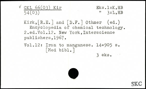 Kirk,[R.E.] and [D.F.] Othmer (ed.) Encyclopedia of chemical technology.