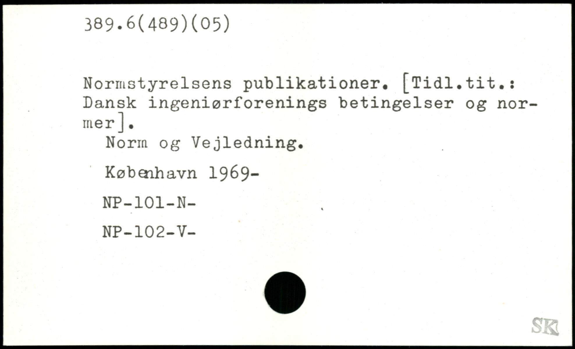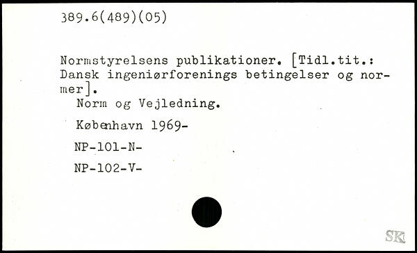 Normstyrelsens publikationer. [Tidl.tit.: Dansk ingeniørforenings betingelser og normer]. Norm og Vejledning, Købaihavn 1969- NP-101-N- NP-102-V-
