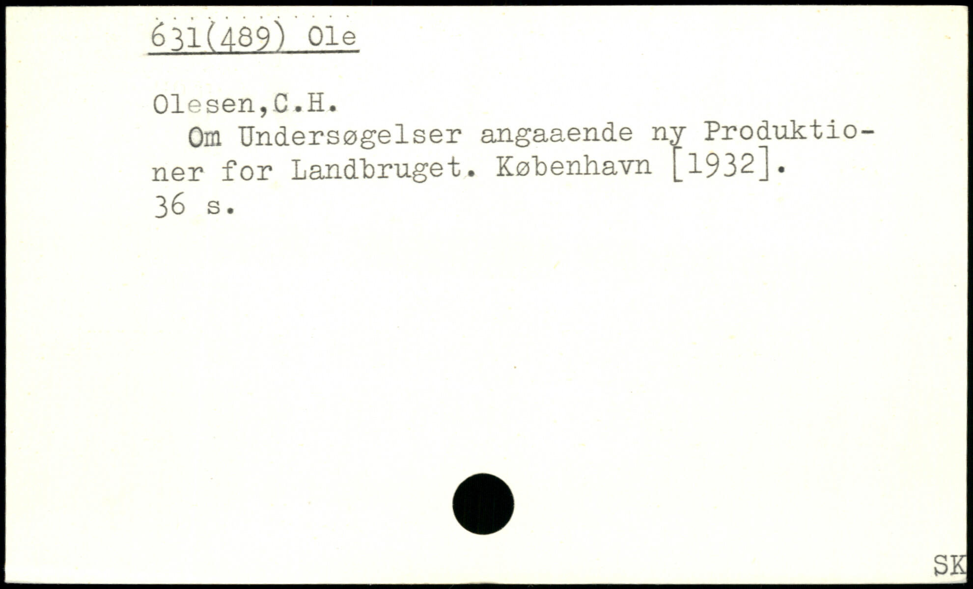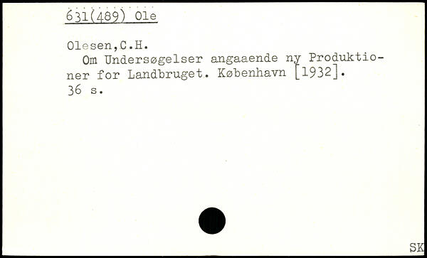 Om Undersøgelser angaaende ny Produktio-ner for Landbruget. København