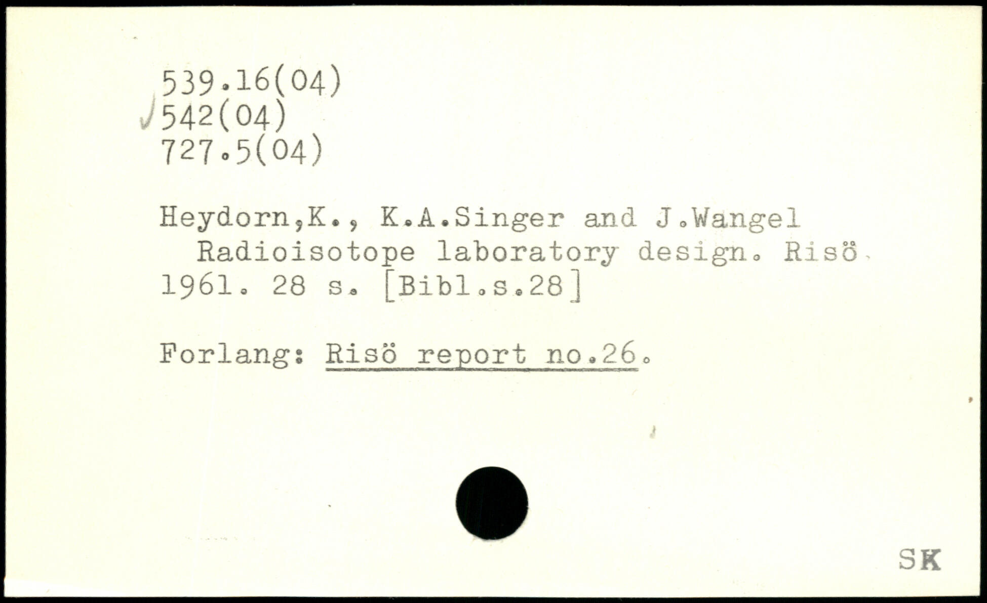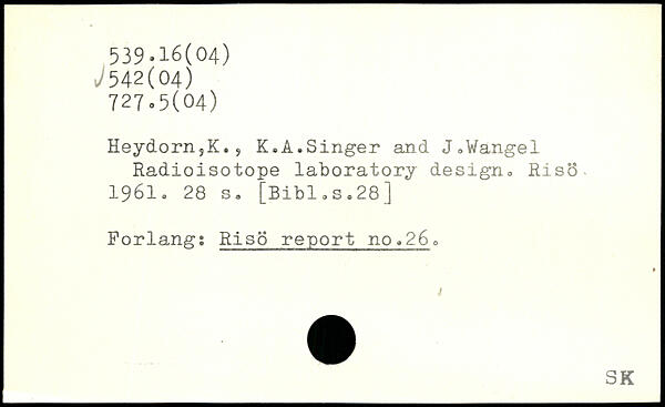 Heydorn,K.j K.A.Singer and J,Wangel Radioisotope laboratory design,, Riso 1961.