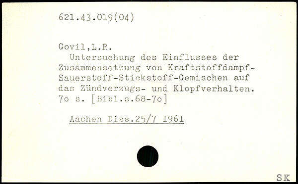 Untersuchung des Einflusses der Zusammensetzung von Kraftstoffdampf-Sauerstoff -St iokst off -Gemischen auf das Zündverzugs- und Klopfverhalten. 7o s.