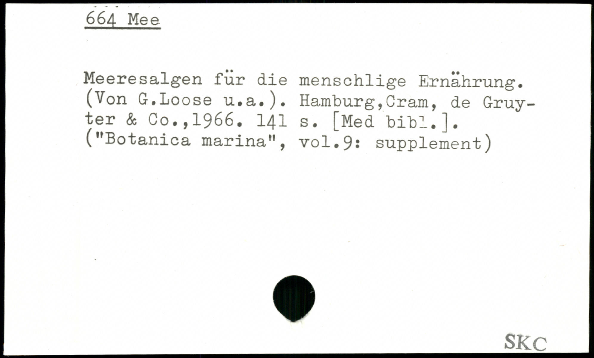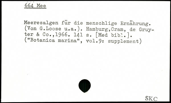 Meeresalgen für die menschlige Ernährung. (Von G.Loose u.a.). Hamburg,Cram, de Gruyter & Go.,1966.