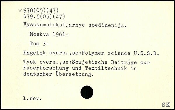 Vysokomolekuljarnye soedinenija.