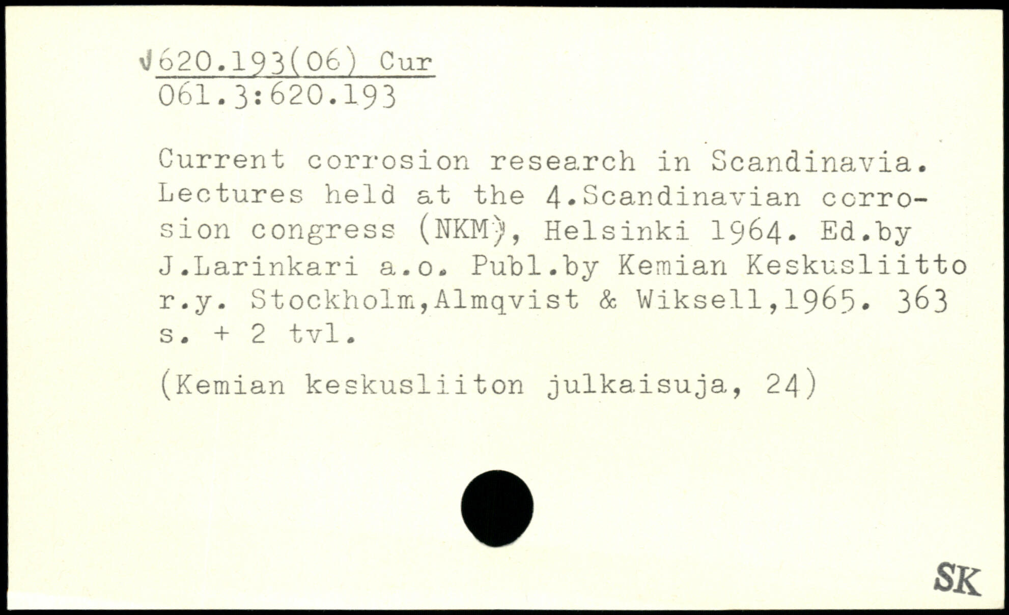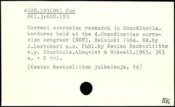 Current corrosion research in Scandinavia. Lectures held at the 4.Scandinavian corrosion congress (NKM)