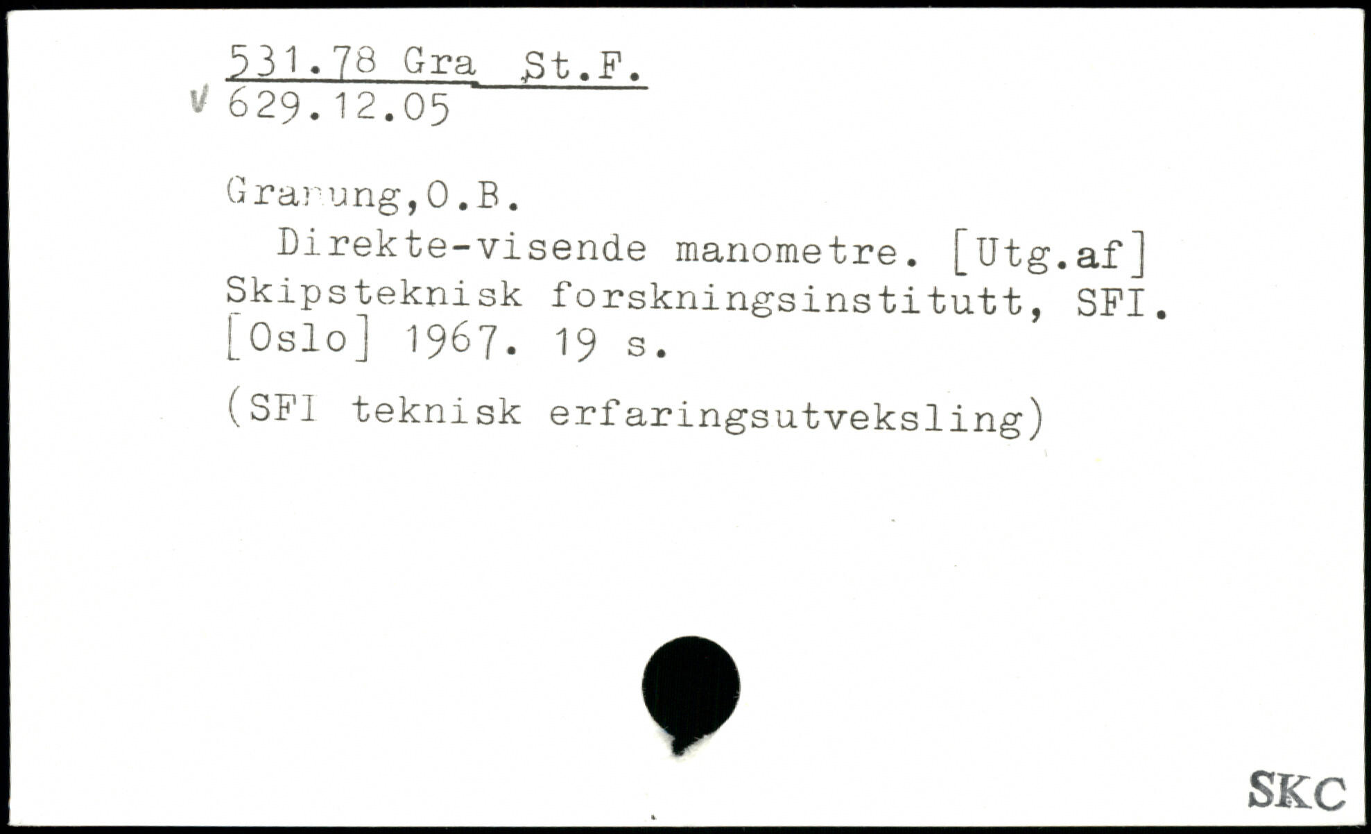 Direkte-visende manometre. [Utg.af] Skipsteknisk forskningsinstitutt, SFI.