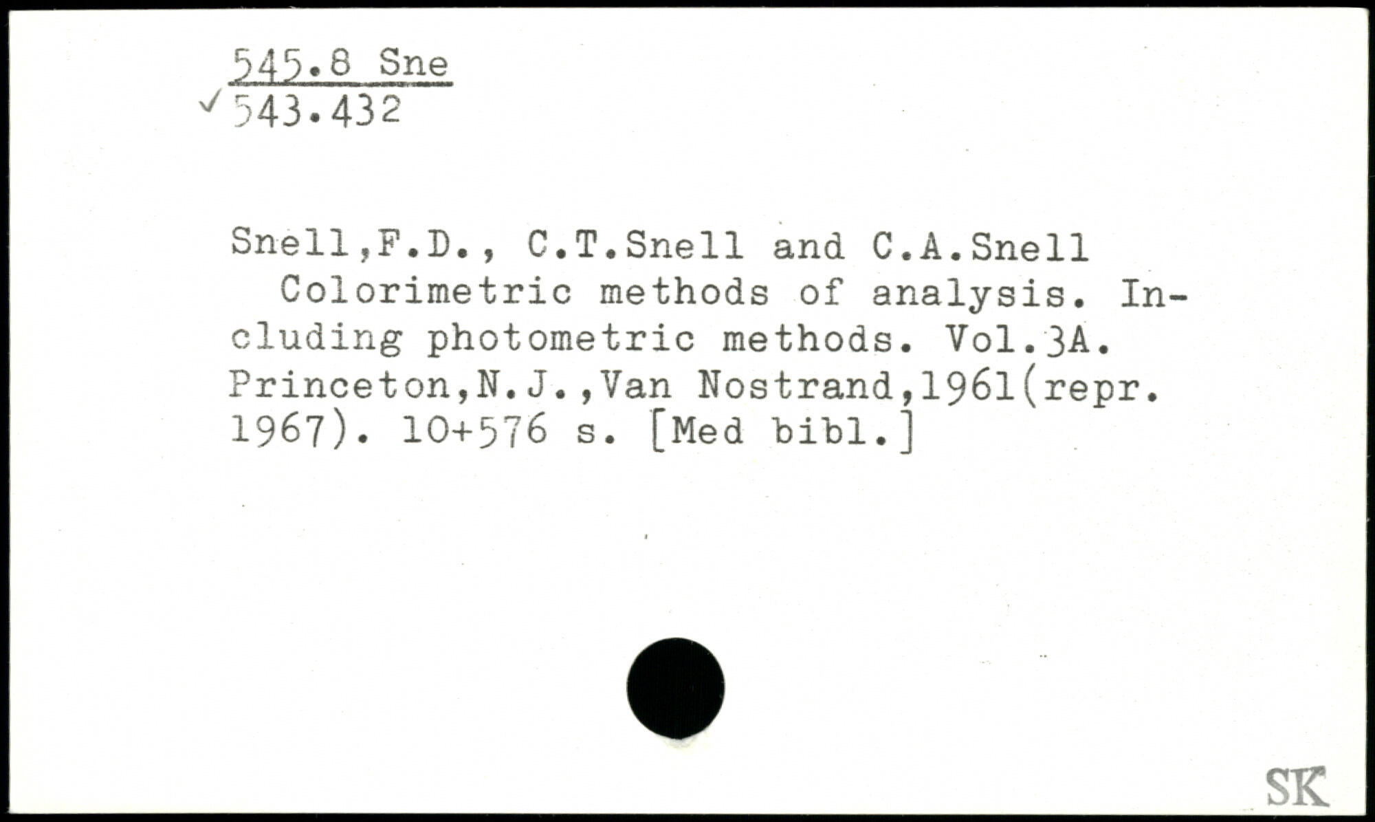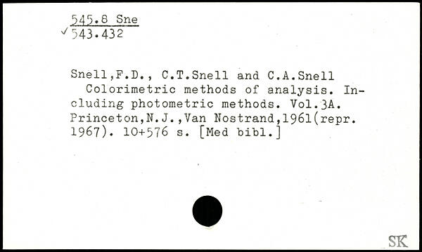 Snell,P.D., C.T.Snell and C.A.Snell Colorimetric methods of analysis. Including photometric methods. V0I.3A.