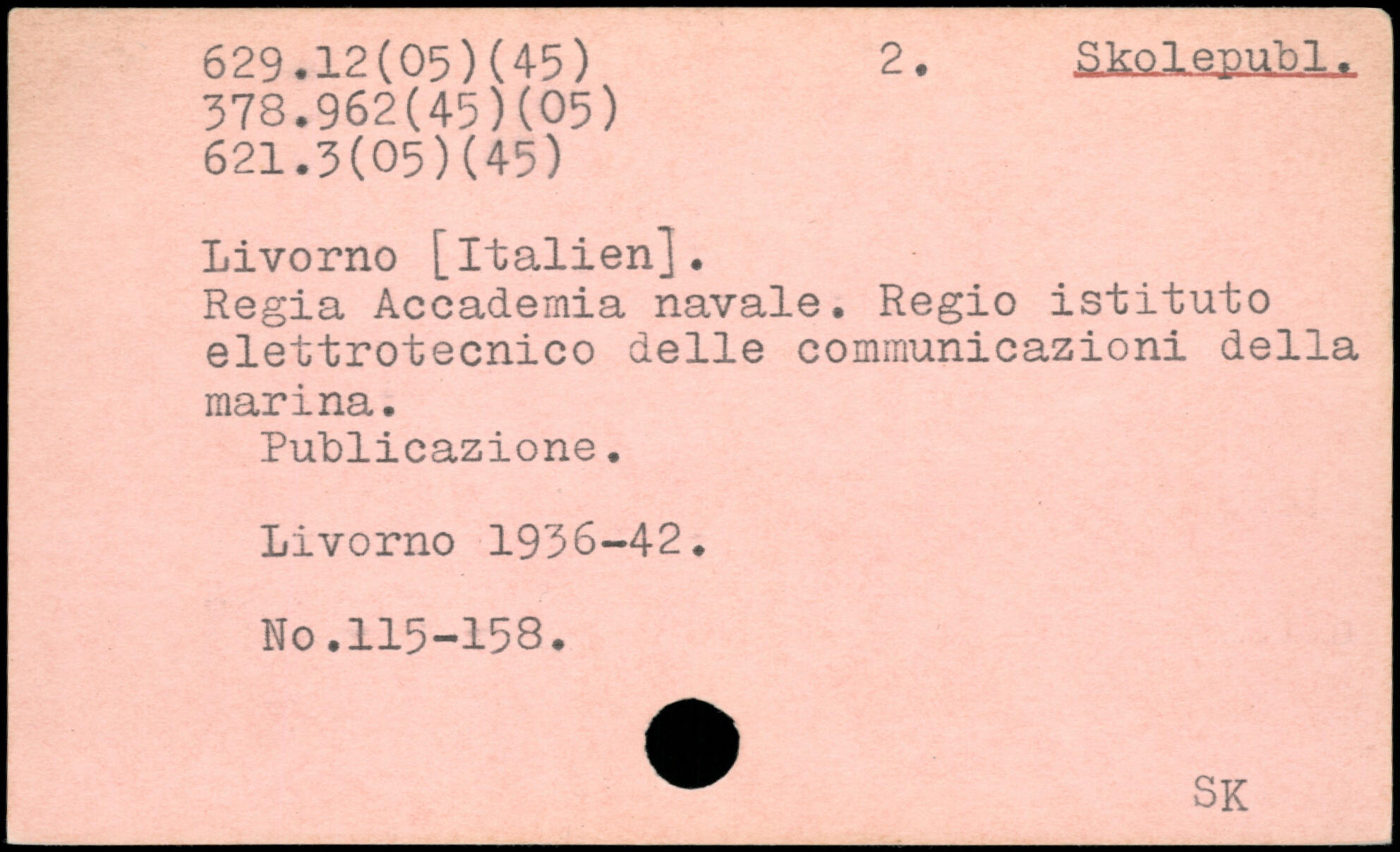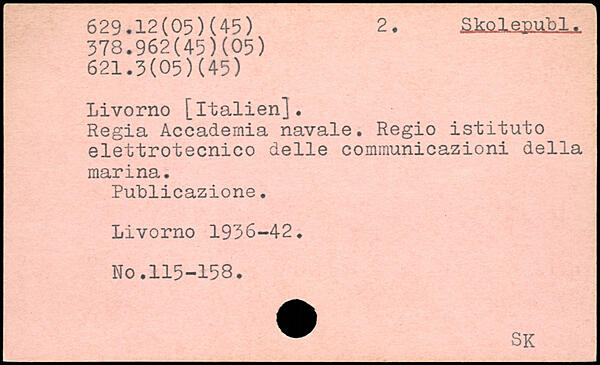 Livorno [Italien]. Regia Acoademia navale. Regio istituto elettrotecnico delle communicazioni della marina. Publicazione. Livorno 1936-42. No.115-158.