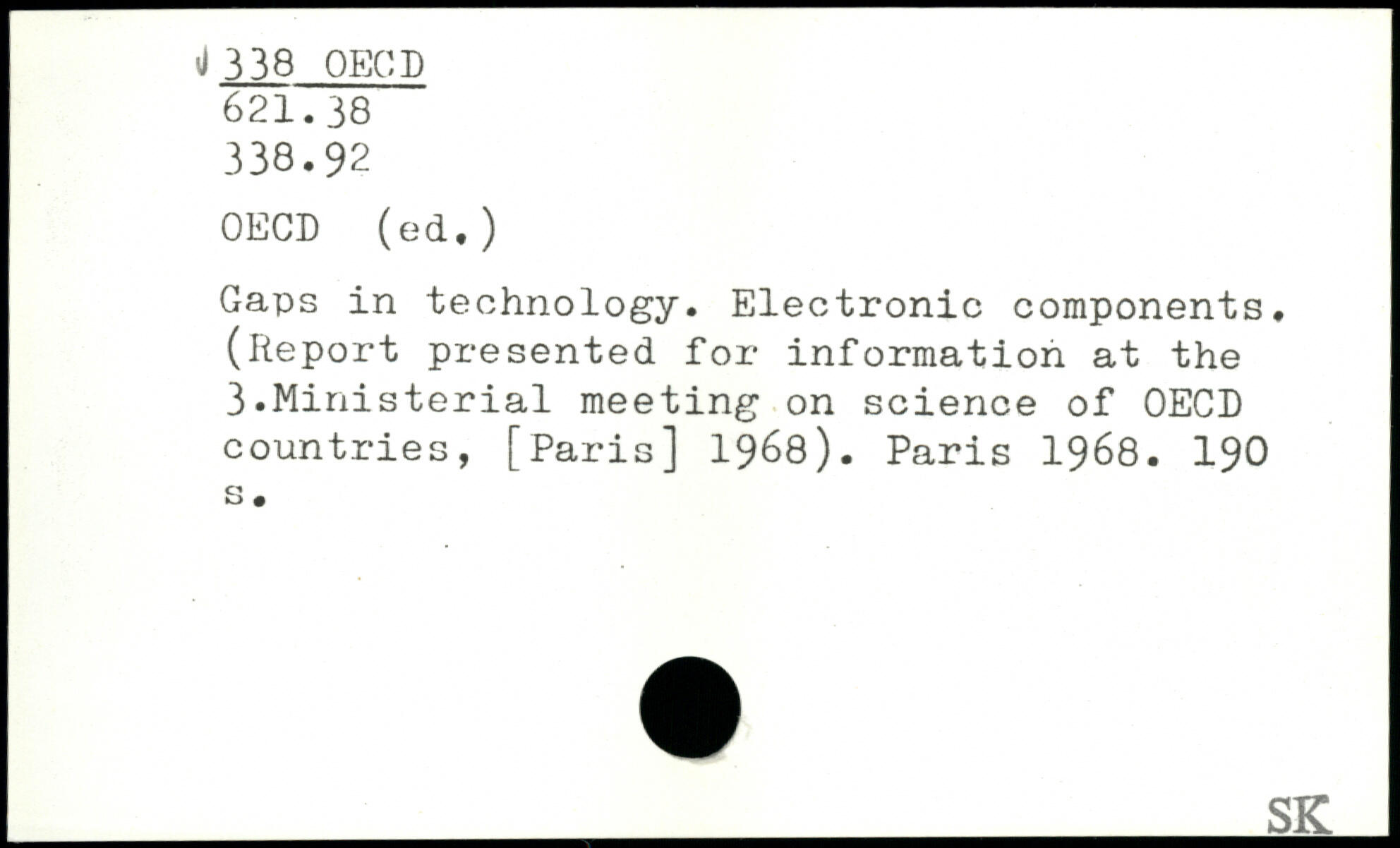 Gaps in technology. Electronic components. (Report presented for information at the 3.Ministerial meeting on science of OECD countries