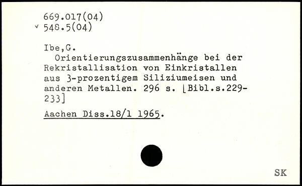 Orientierungszusammenhänge bei der Rekristallisation von Einkristallen aus 3-prozentigem Siliziumeisen und anderen Metallen.