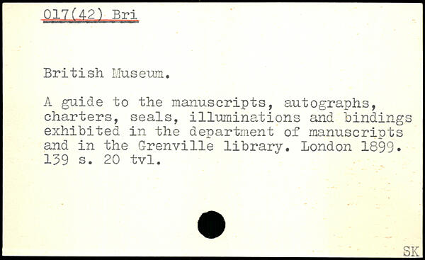 A guide to the manuscripts, autographs, charters, seals, illuminations and bindings exhibited in the department of manuscripts and in the Grenville library.