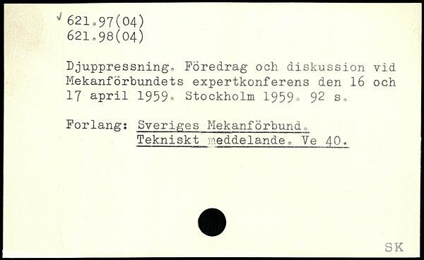 Djuppressning, Föredrag och diskussion vid MekanfÖrbundets expertkonferens den 16 och 17 april 1959®