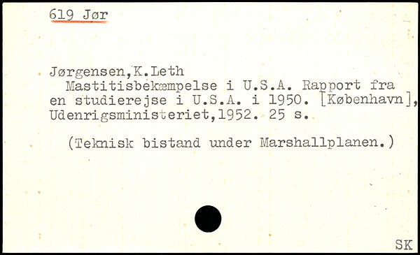 . Jørgensen,K.Le th Mastitisbekæmpelse i U.3.A. Rapport fra en studierejse i U.S.A. i 1950.