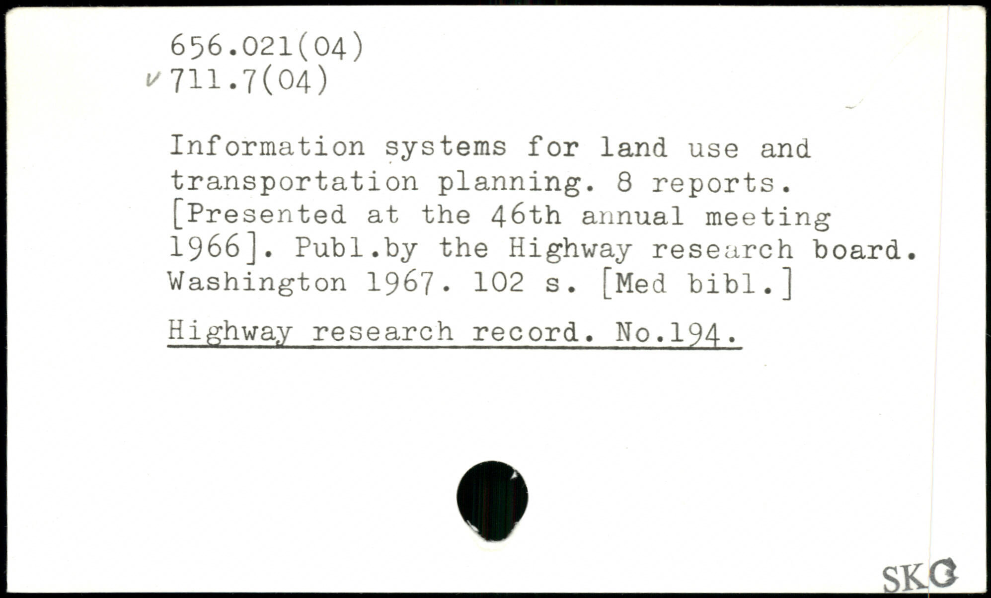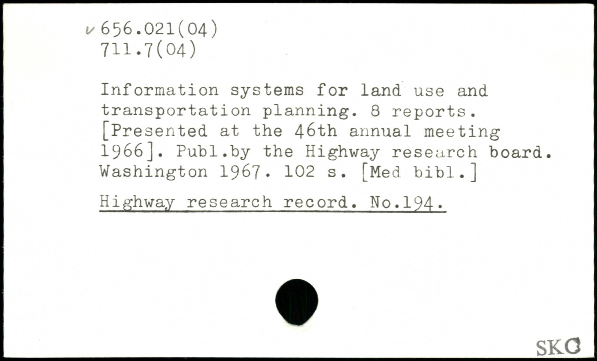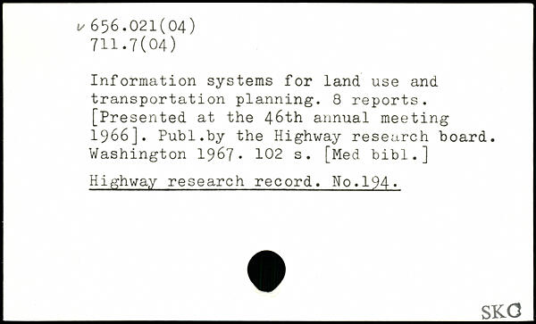 Information systems for land use and transportation planning. 8 reports. [Presented at the 46th annual meeting 1966].